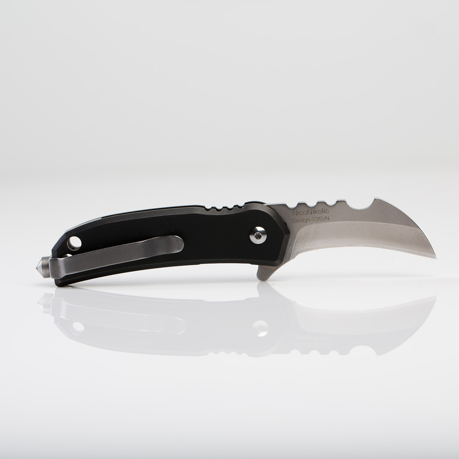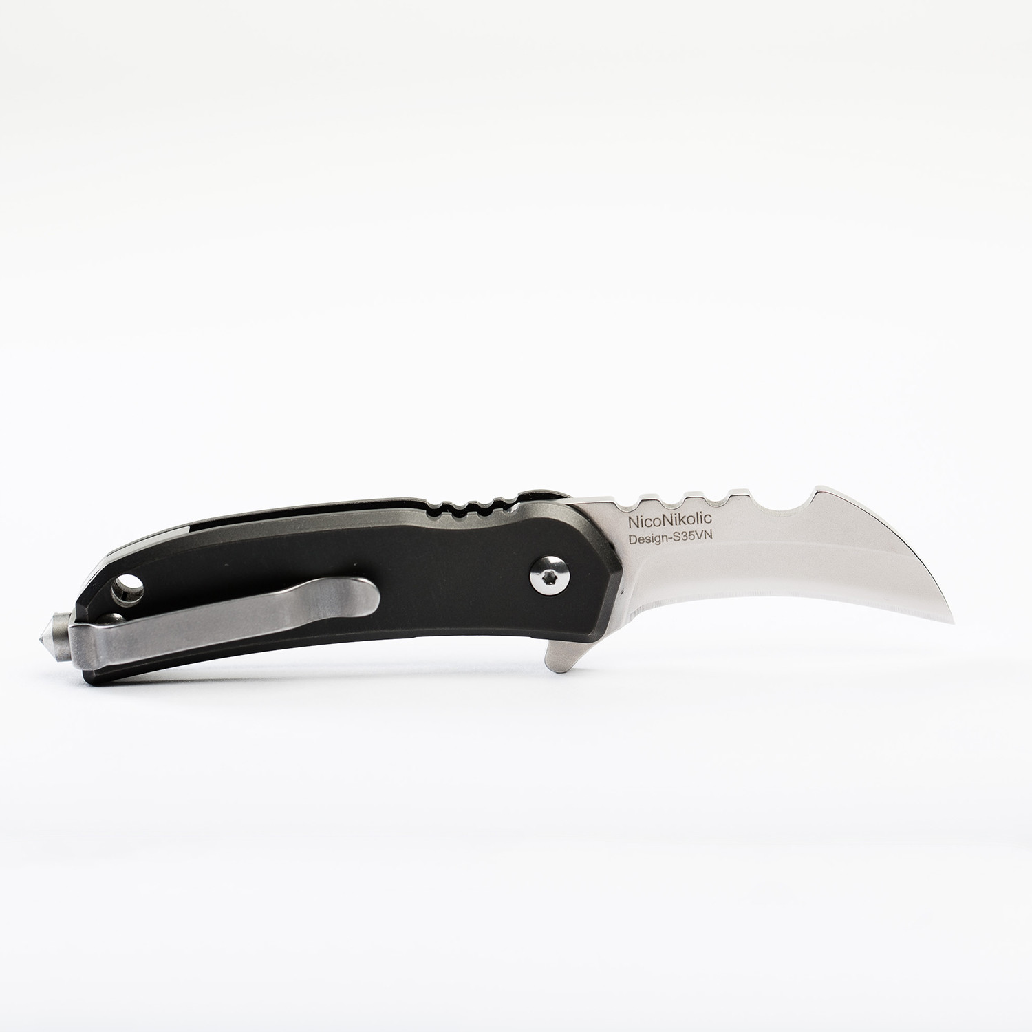 Black Panther Titanium Knife + Glass Breaker + Pocket Clip // Black