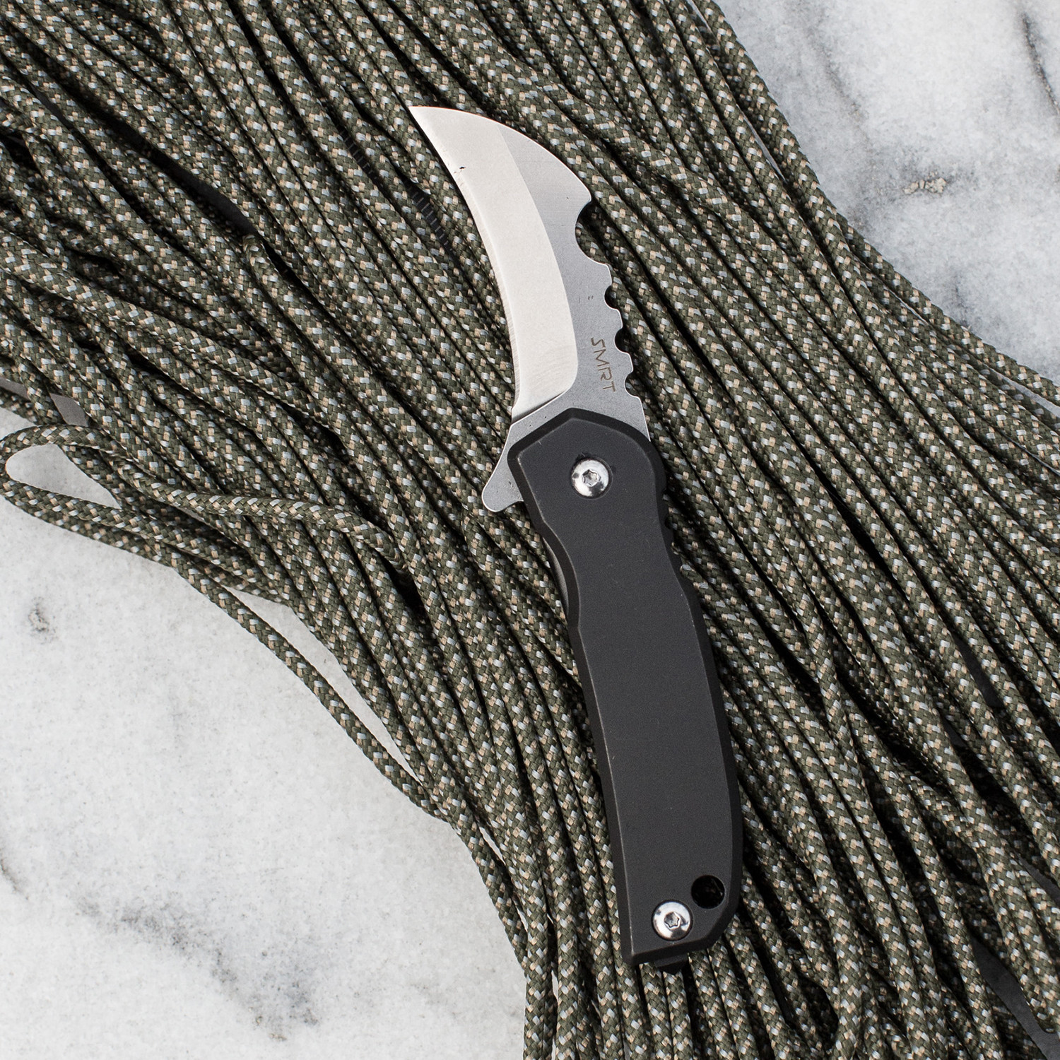 From starting fires, cutting cords, to escaping in an emergency, every part of this pocket knife was engineered to be versatile in all situations. The notch on the back of the blade is specifically for striking fire steel rods, allowing you to start fires easily without damaging the blade. The hawkbill blade design "grabs" onto whatever it's cutting, making light work of the toughest tasks.