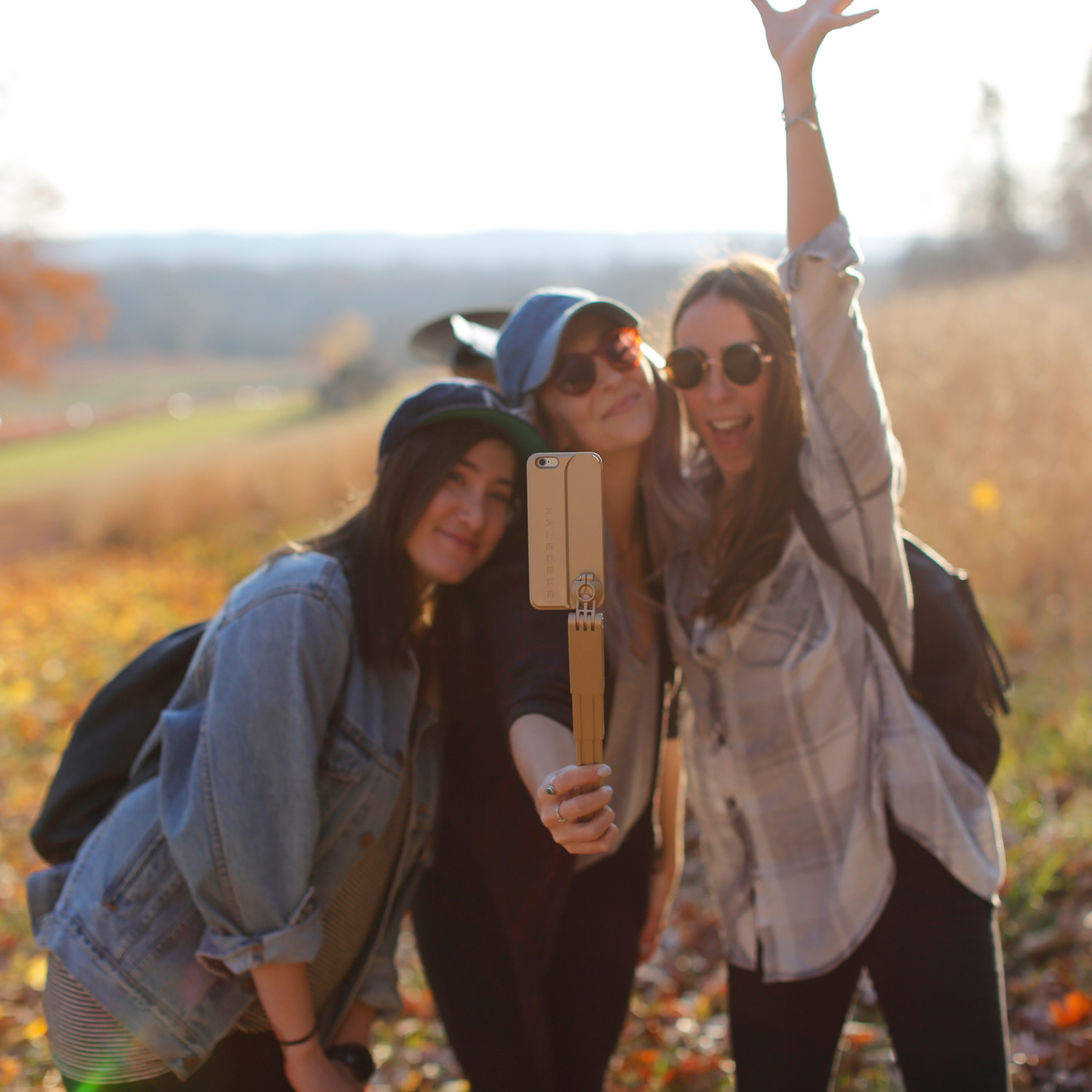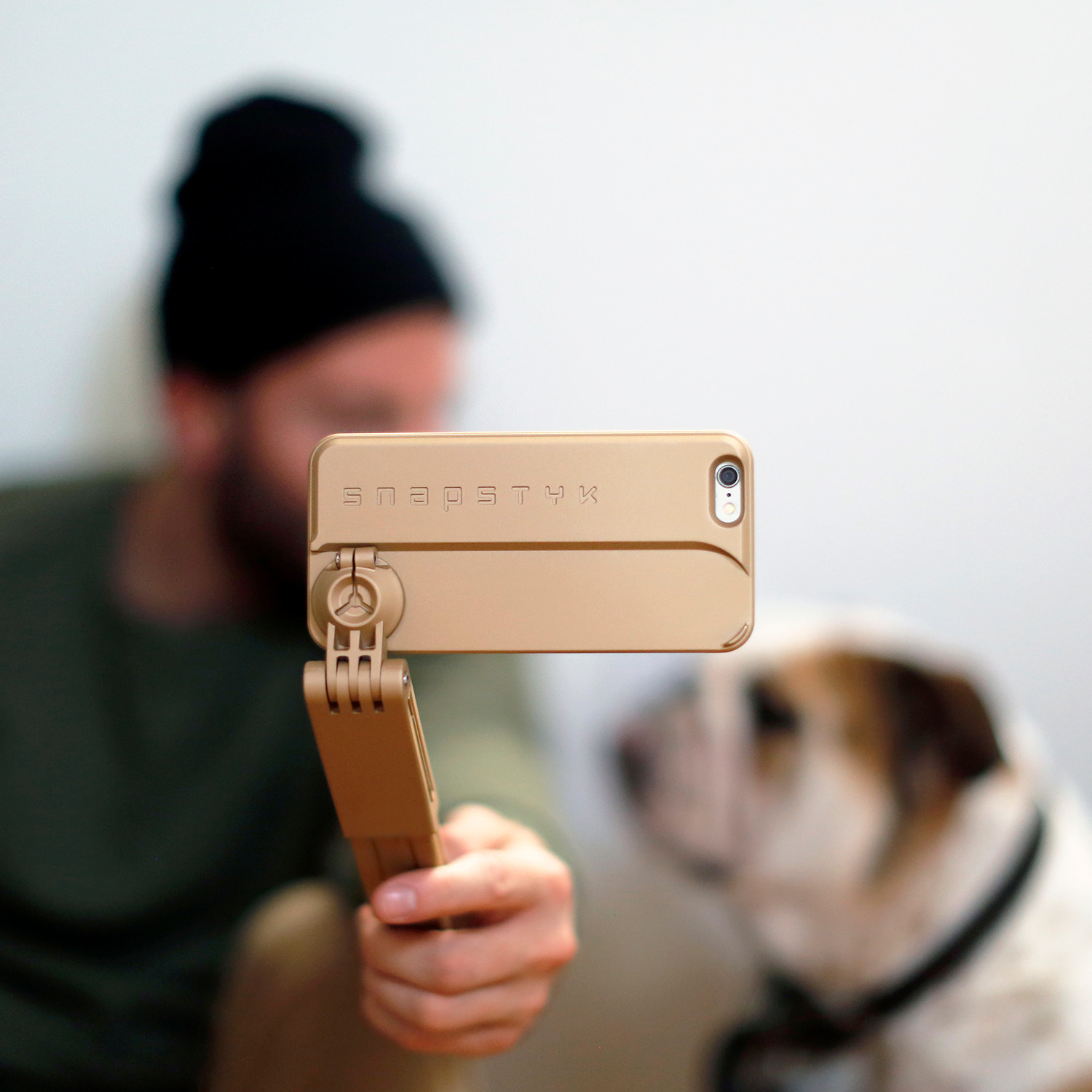The SnapStyk is a sleek, metallic case for your iPhone 6/6s, with a Bluetooth-enabled selfie stick built right in. This means that you can snap photos from the perfect angle no matter where you are, with no extra cords or tools to carry - and actually look good doing it. The case is expertly designed to be sturdy and easy to use, while maintaining full access to both cameras, the charging and headphone ports, the mic and speaker, and the volume buttons. Capture your adventures without stopping to hook up a clunky selfie stick, missing someone from the group shot, or having to hope a passerby can be trusted to take a good photo - and give your phone back when it's over.