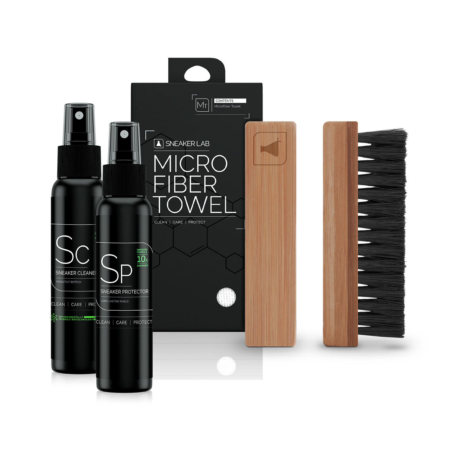 The Sneaker LAB Essentials Kit features two effective cleaning and protecting formulas along with two must-have tools to keep your shoes looks as good as they day you got them.