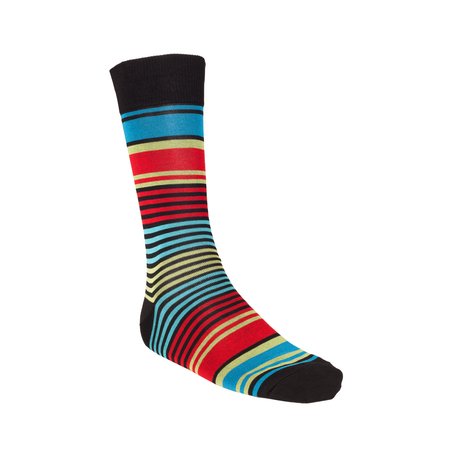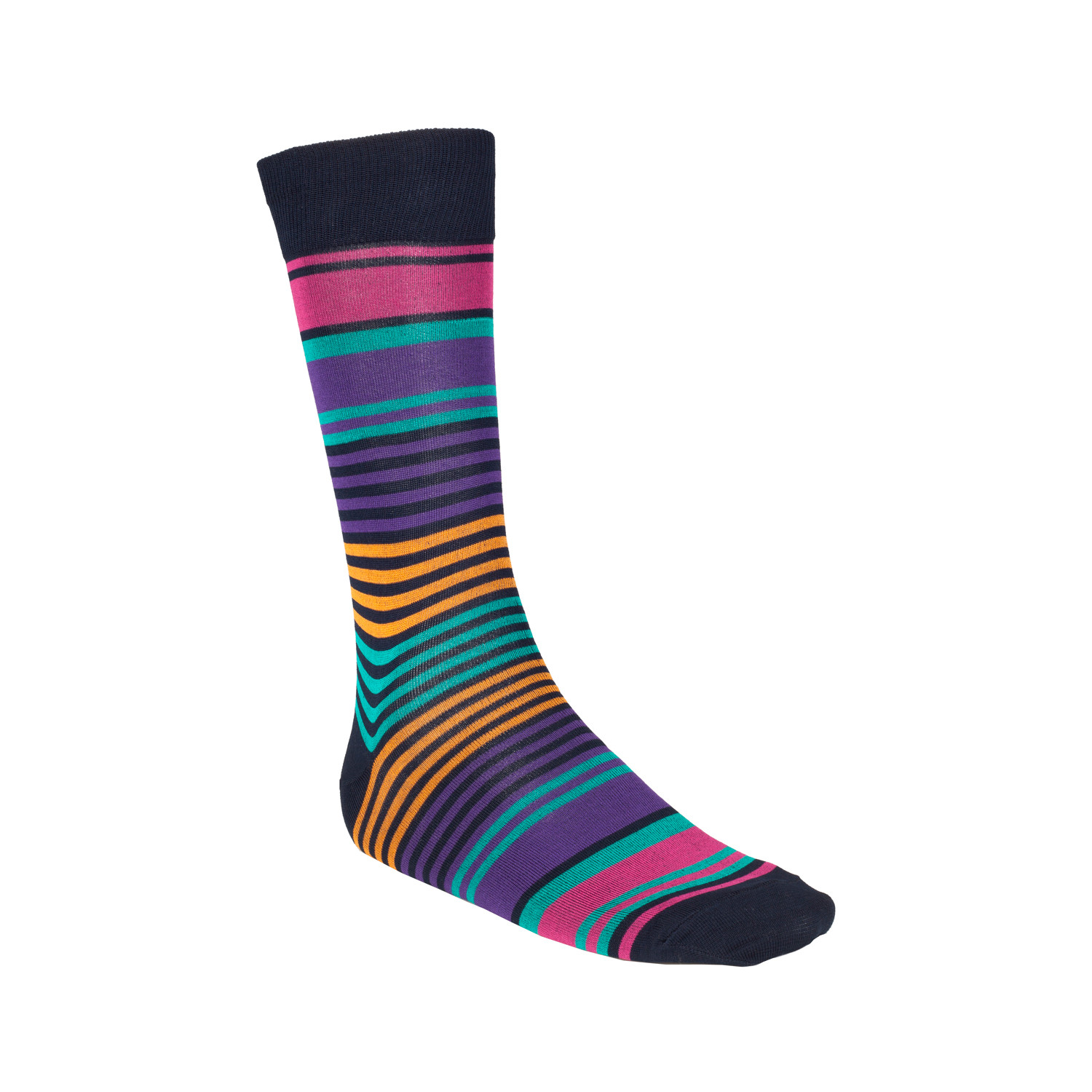 This double pair of socks have excellent breathability for all day comfort. Added spandex ensures great stretch for a perfect fit. For socks with subtle lustre and crisp color, the multi stripe pattern available in this twist on a traditional sock is the perfect pair for you.