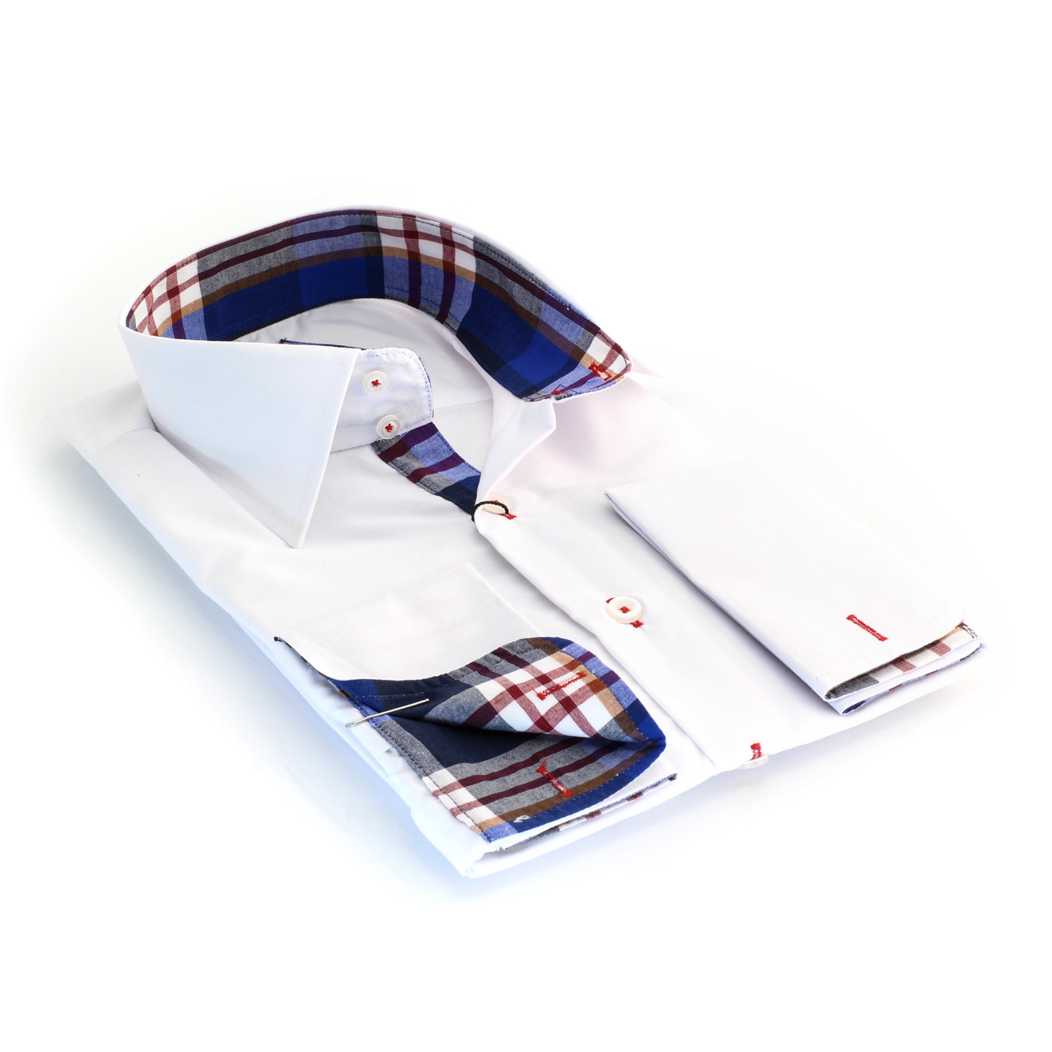 Amedeo // Reversible French Cuff Shirt // White + Blue + Red Check (XL)