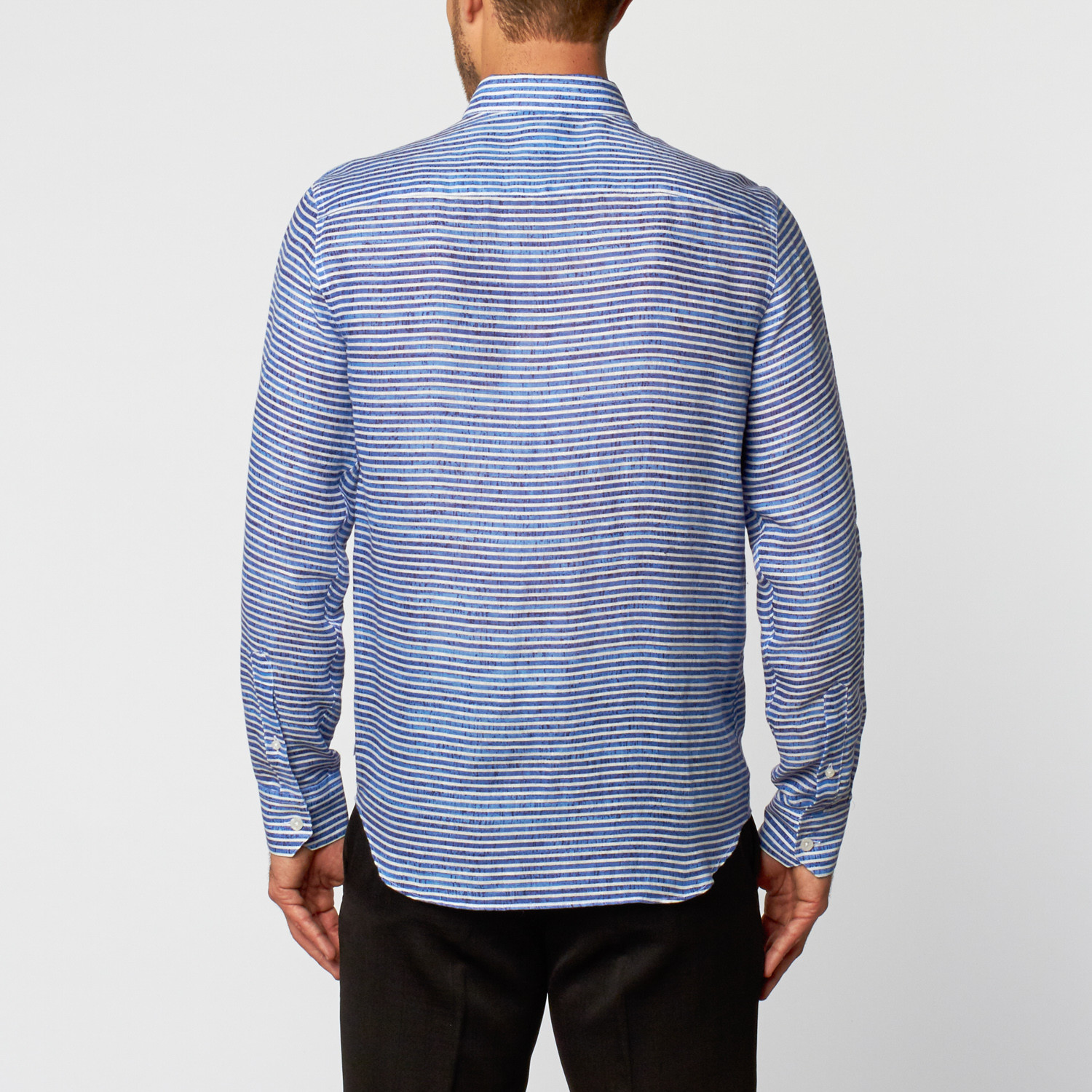 Even your wardrobe fundamentals deserve to be premium. This Blue and White Long-Sleeve Dress Shirt is a must-have staple for any tastemaker.