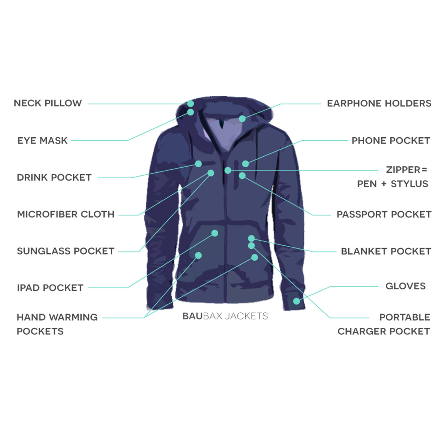 An all-weather, water-repellent Windbreaker, this piece has an impressive 15 features such as a built-in neck pillow, eye mask, gloves, iPad pocket, drink pocket, pen-stylus hybrid, and more. It's not just perfect for all your travels, it's the Swiss Army Knife of travel jackets — watch the full video to believe it!