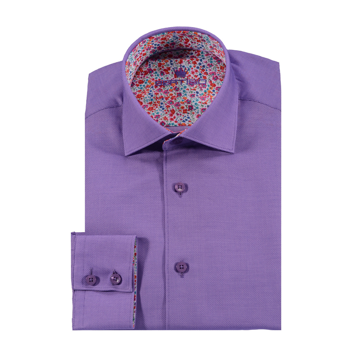 Bertigo // Pioli Solid Button-Up Shirt + Floral Trim // Purple (M)