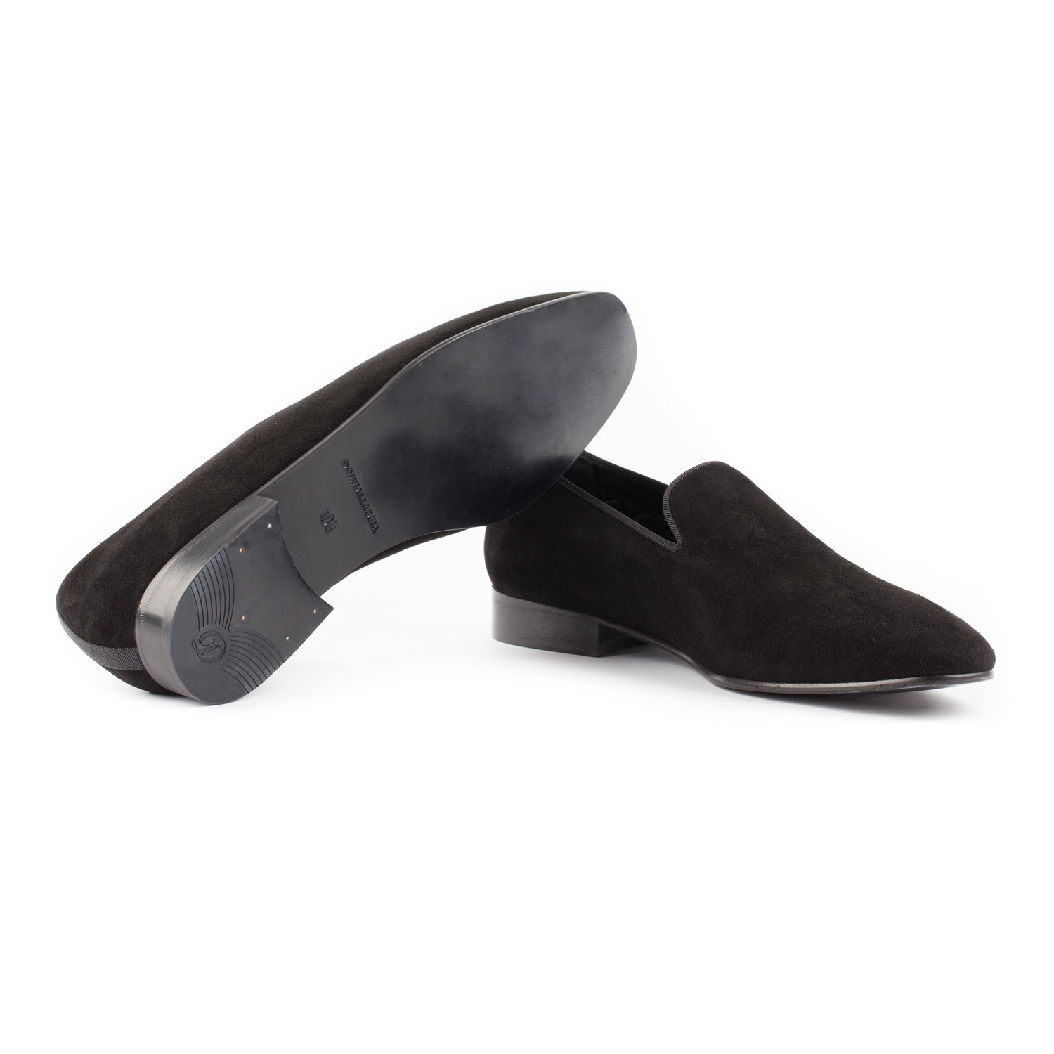 The Eton Suede Loafer Slipper is the gentleman's best friend. Featuring smooth suede uppers hand-embroidered with the Dapper England 'D,' each of these fine styles boasts a square toe last, a satin quilted inner lining, and a polished black leather outsole. They're the perfect pick for those who love to dress with a lot of class.