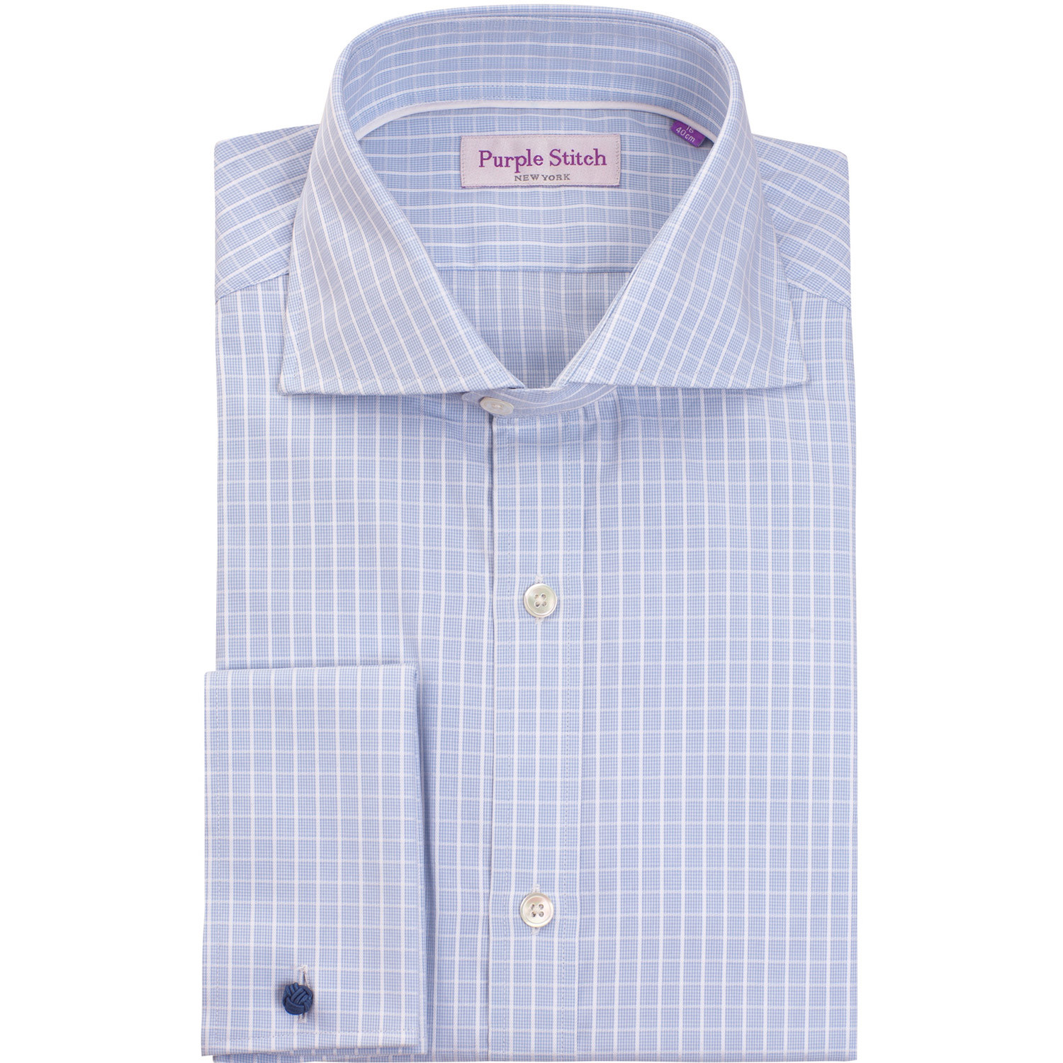 Purple Stitch // Thompson Button-Up Shirt // Light Blue + White Checks (US: 16R)