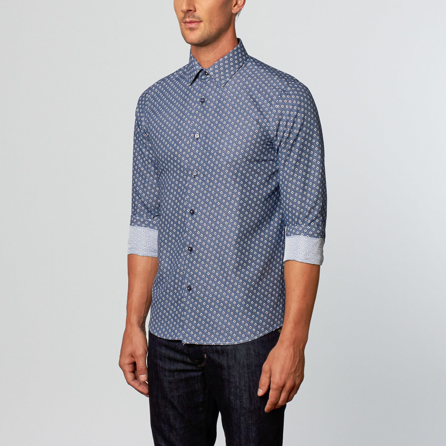In the modern European slim fit, this edgy dress shirt will make you want to stroll the streets of Milan or Rome and show off the exceptional European craftsmanship and stylistic flair that have come together in this versatile piece. Lightweight and lean-fitting, it's the easiest way to add a little Italian panache to your wardrobe.