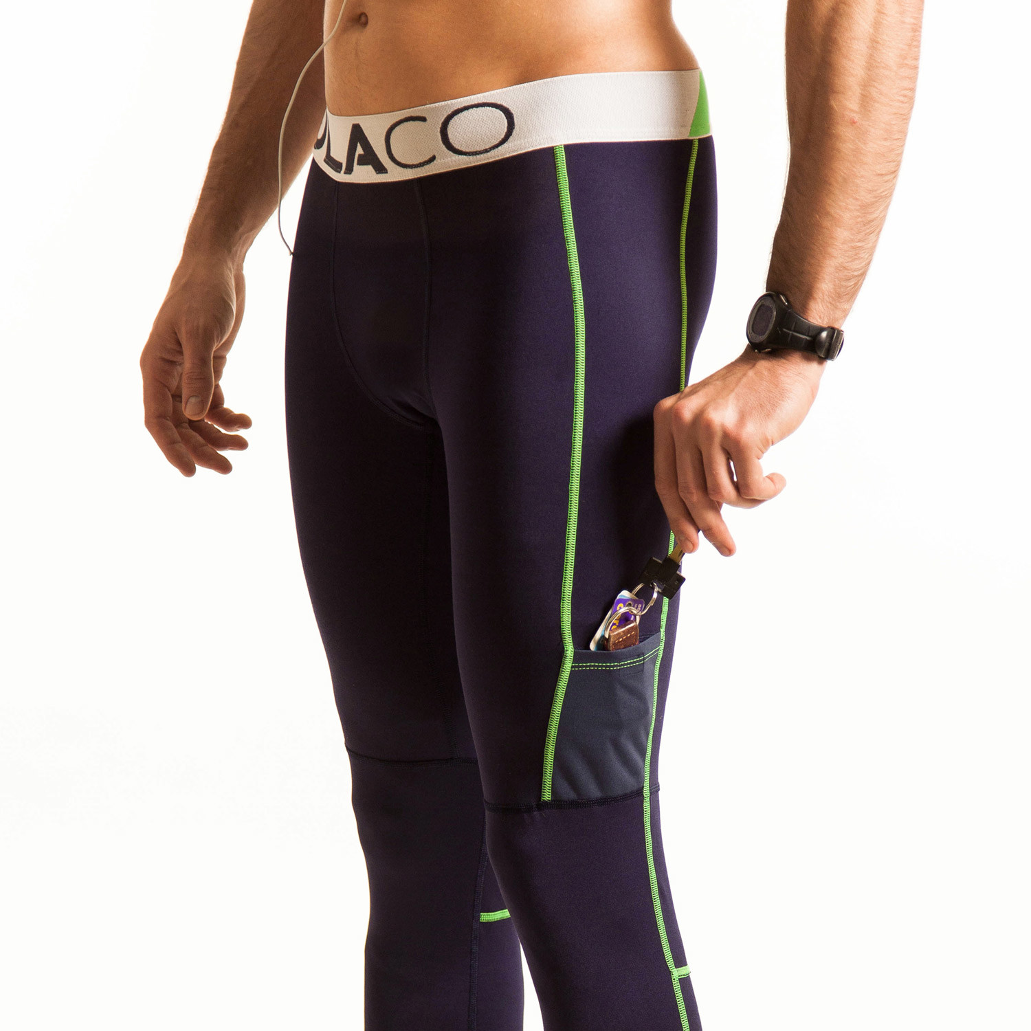 The first of its kind and made in the USA, the Fulton .75 is a unique rendition of the original North Moore Short. The Fulton .75 is a 3/4 length compression pant with two water-proof pockets to store your stuff. One pocket is specifically designed for your mobile phone or music player, while the other pocket can serve as a safe-haven for valuables such as keys, cash, or credit cards during an intense, expectedly sweaty, workout.