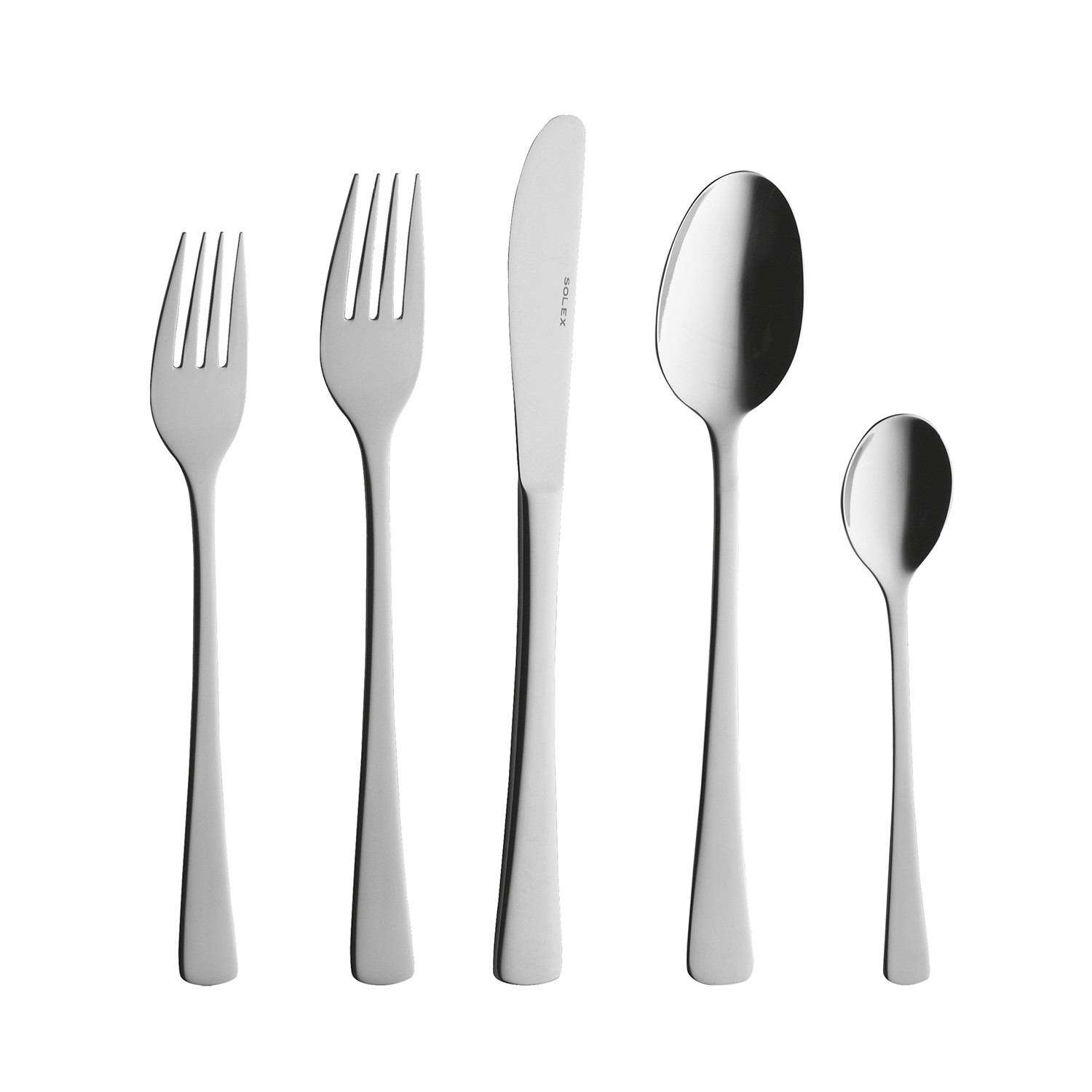 Sit down to sophistication with this Solex Karina Dinner Set. Solex flatware is constructed from 18/10 stainless steel, with the high-quality alloy of chrome, nickel, fine iron, and carbon. Despite its gleaming beauty, stainless steel is an incredibly practical material resistant to corrosion and food acids from eating or washing in the dishwasher.