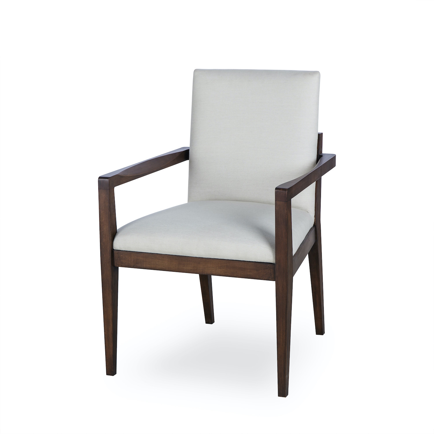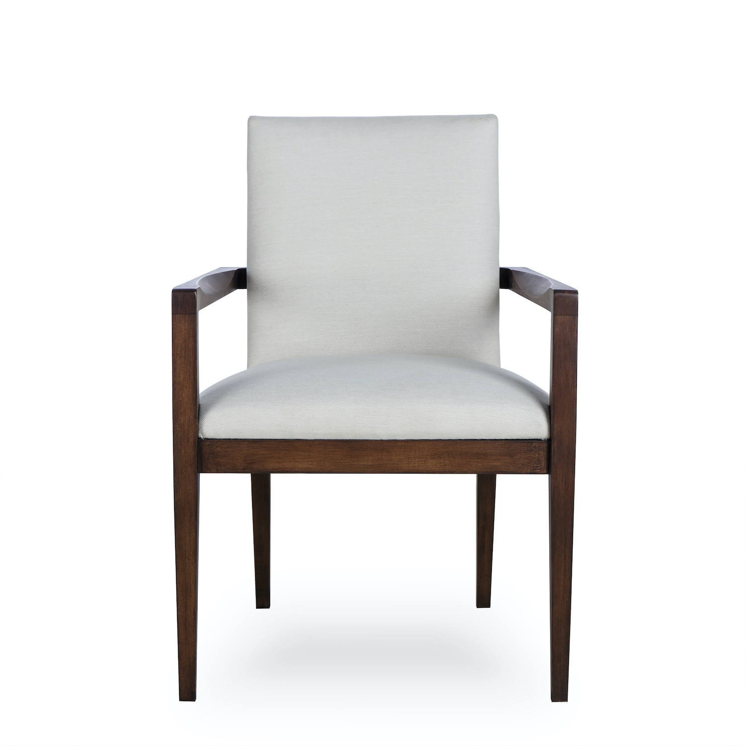 Classic meets comfort in the transitional design of the Miranda Arm Chair, which works well in both traditional and contemporary interiors. Crafted from a solid poplar and plywood frame, the beech legs feature a striking mocha stain, and supports a fully upholstered seat and back in Macy Sailor fabric.