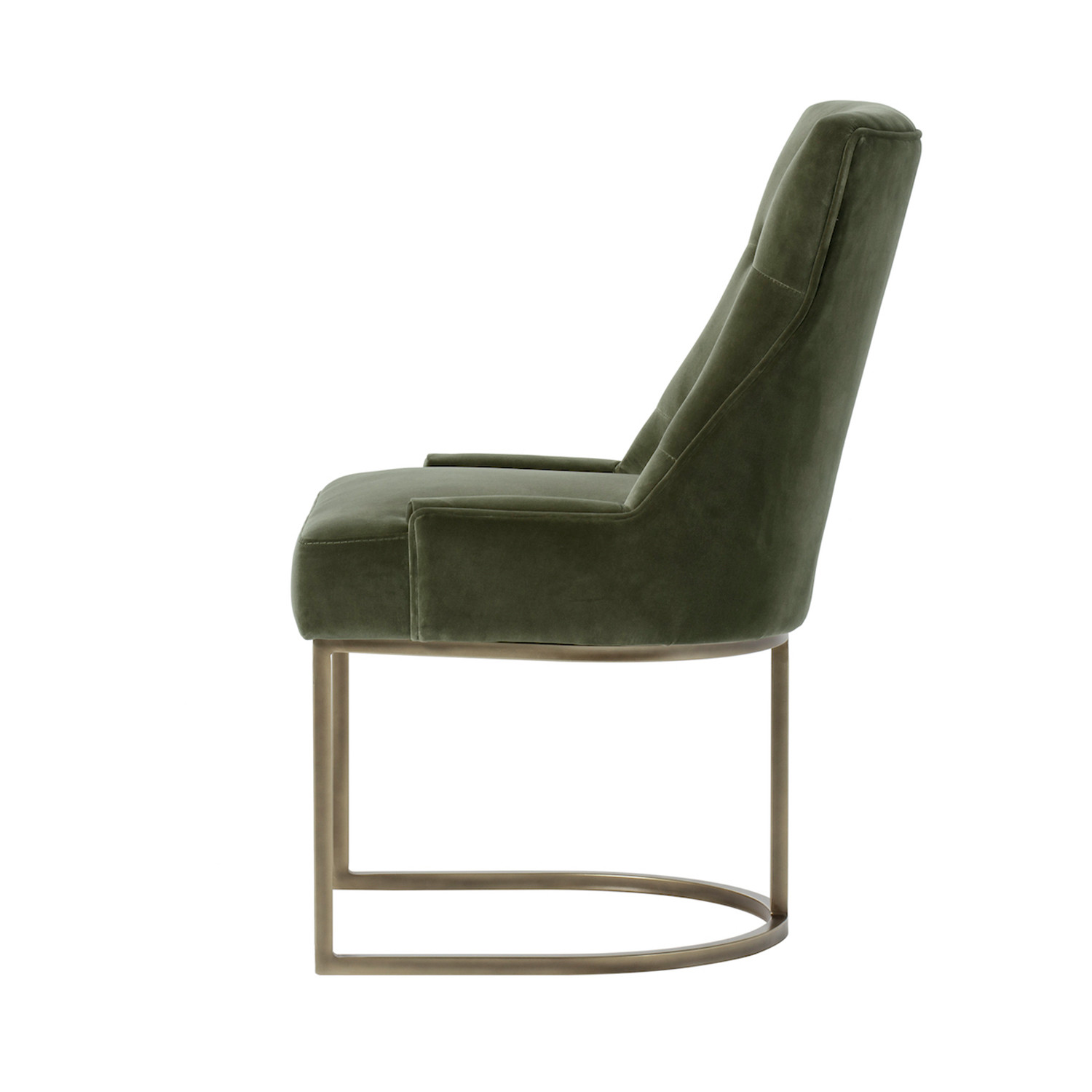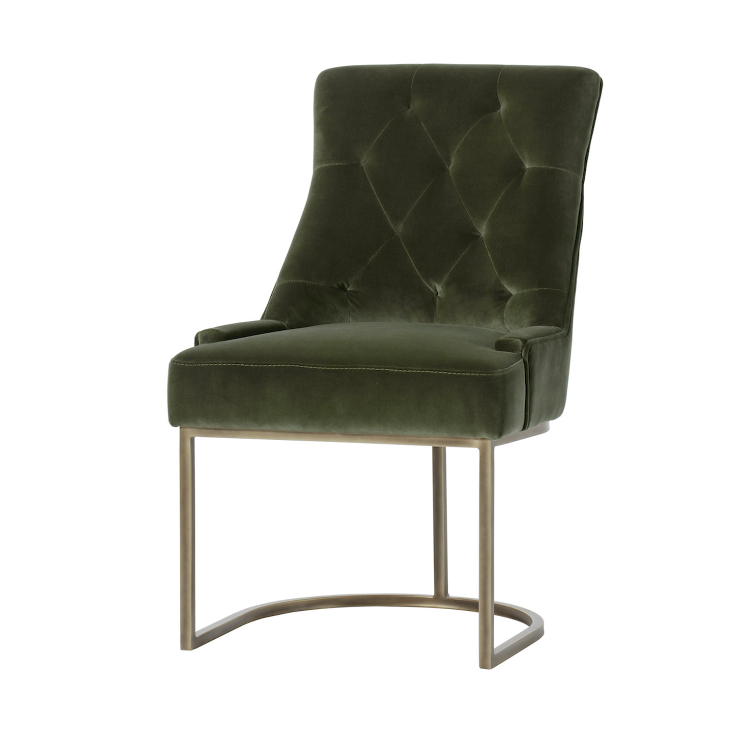 Sitting pretty comes easy in the Rupert Dining Chair, which boasts a rich, aged green velvet and tufted back. Its sleek lines and antique touches provide intrigue and interest to any space.