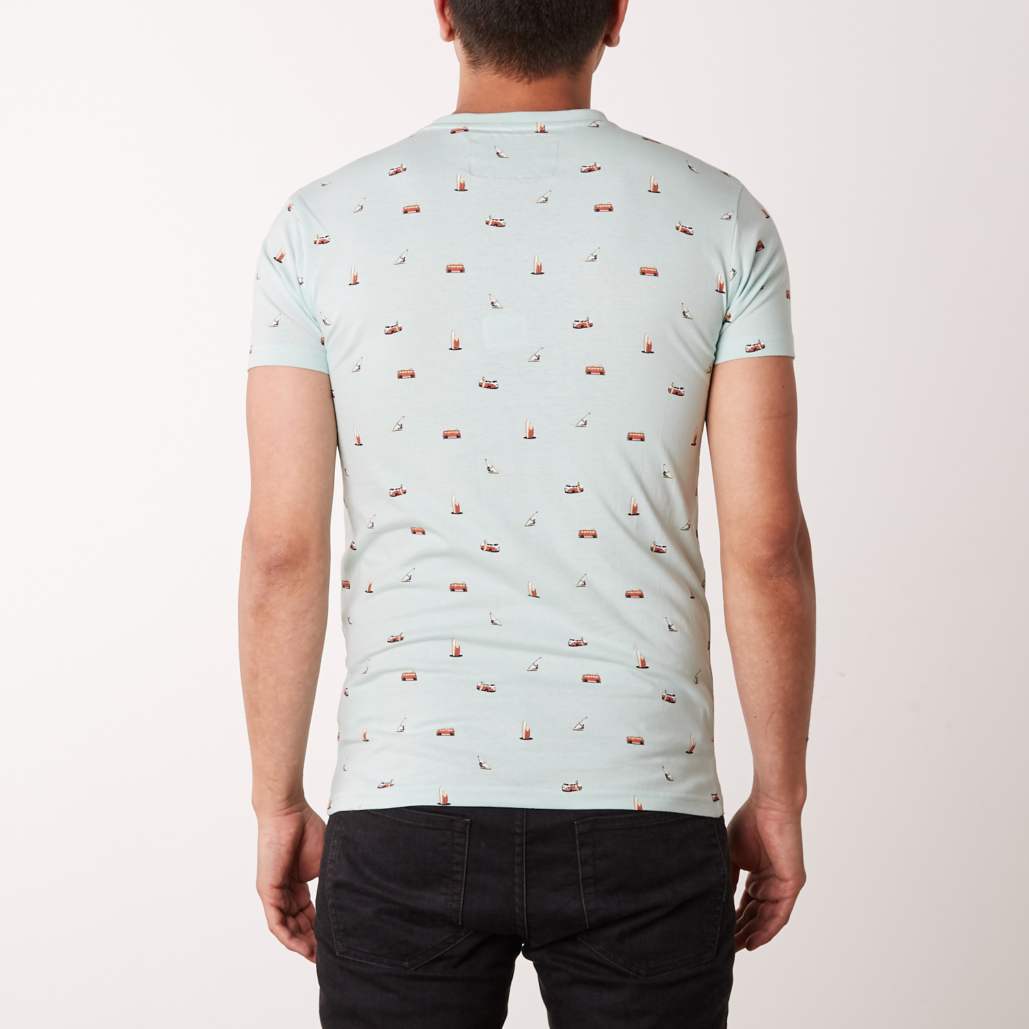Cuby Transport Print Crew Neck Pocket Tee // Mint