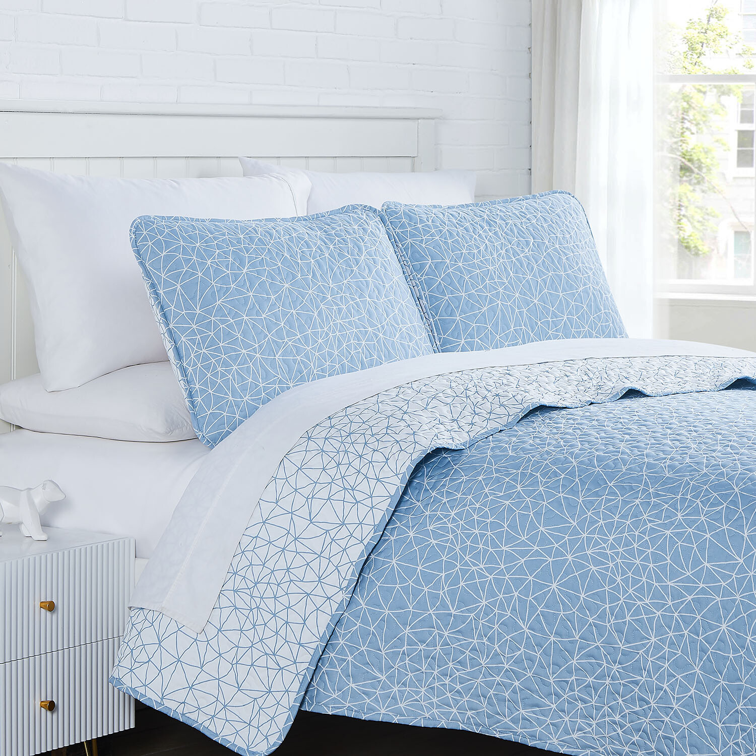 Geometric Maze Oversized Quilt Sets // Geometric Maze Blue