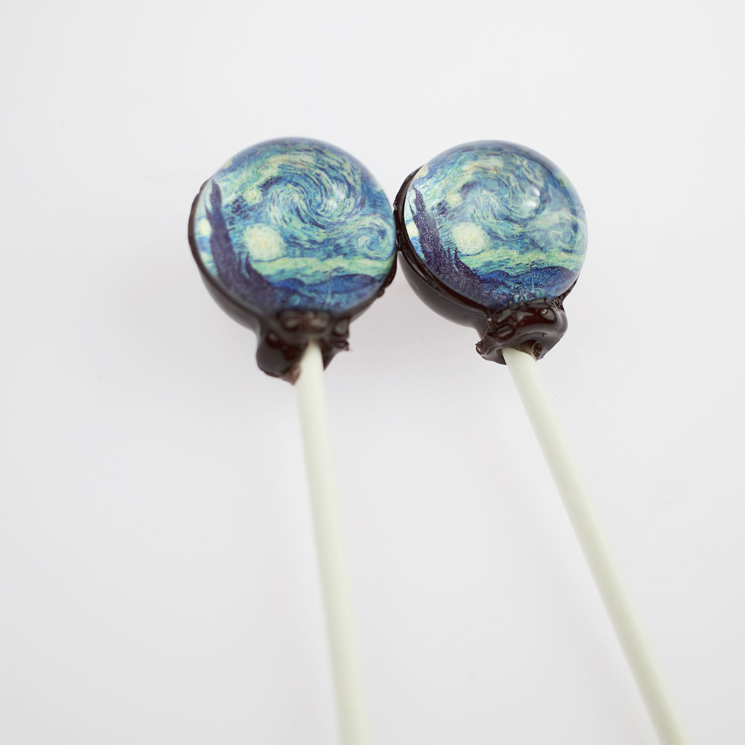 The gorgeous Artisan Collection from Sparko Sweets are custom, gourmet lollipops that show off the beauty of art. The front is crystal clear, the back is deep black, and the middle features edible and crazy-realistic images of the famous works of art - in miniature. Handmade in Los Angeles and beautifully packaged, these aesthetically pleasing treats are perfect for collecting and trading, parties, theme events, event planners, fundraisers, holidays and events.