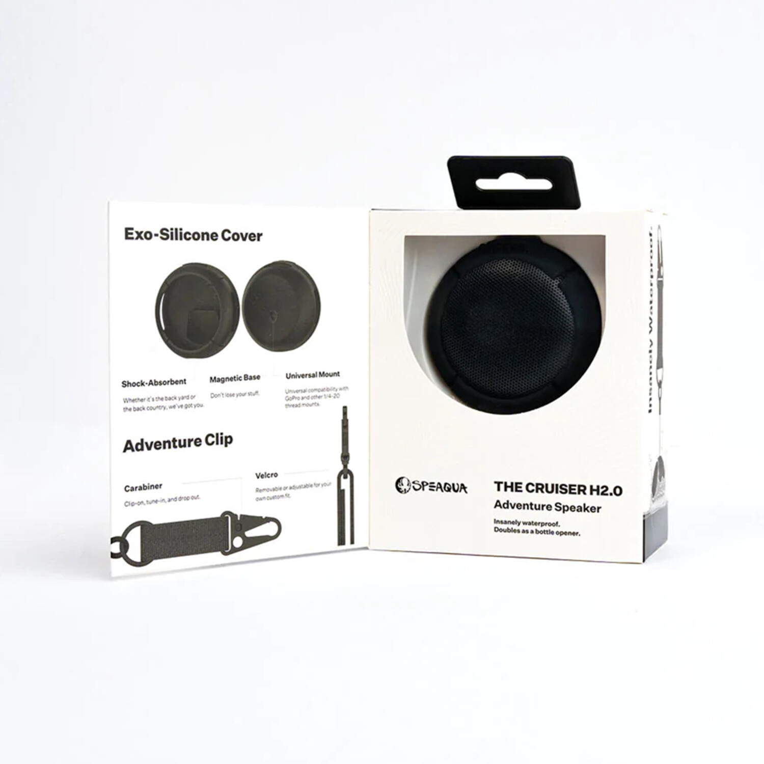 The Cruiser H2.0 Adventure Kit is designed for you to get more out of your speaker—from sea to summit and anywhere in between. The Kit includes "The Shell" and a multipurpose clip, granting limitless versatility and mounting capabilities to your Cruiser H2.0. Take your speaker where it has never been before without ever skipping a beat.