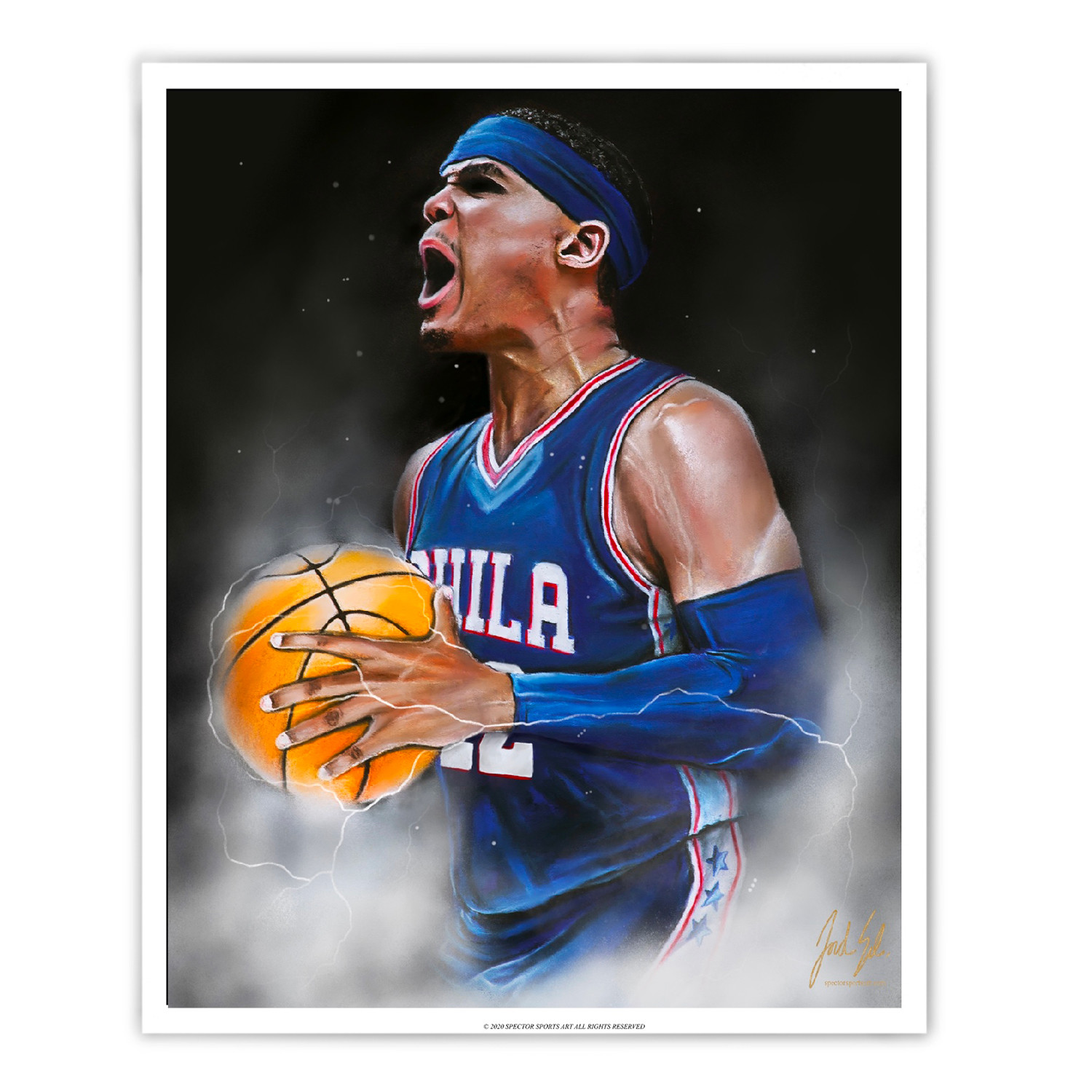 Tobias Harris brings a new energy and style of play to Philadelphia. His consistent play and humble personality make him an instant fan favorite. The energy he brings to every game is evident in this painting.