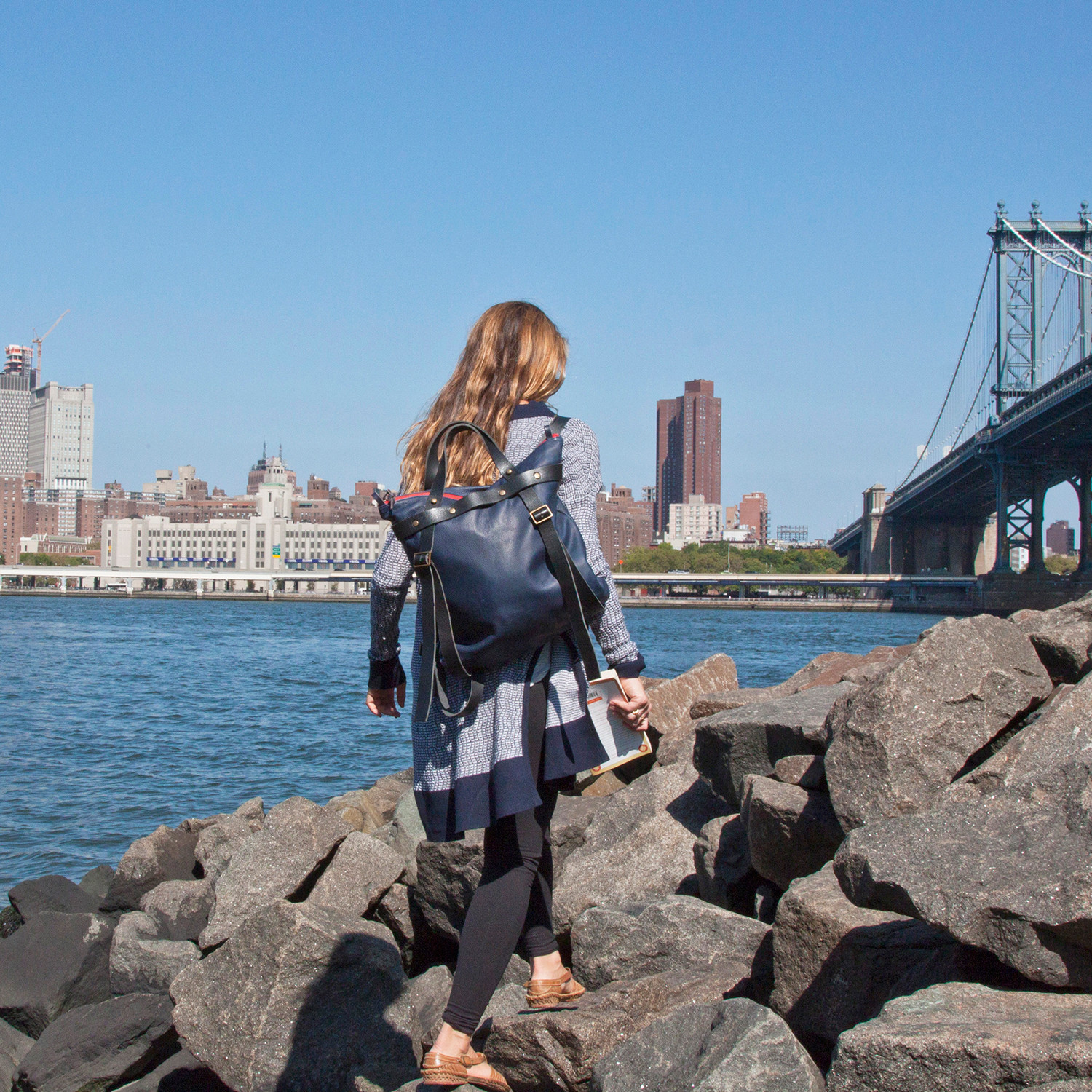 The LG A-Line is perfect for your commute. The straps adjust so you can can wear it over your shoulder as a tote, carry it by hand as a briefcase, or backpack throughout your day. Its fine, yet durable Italian Leather is lined with 100% cotton, and hand-constructed in Brooklyn, NY. And, for every 10 pieces sold, a sewing machine is given to a woman in rural Assam, India.