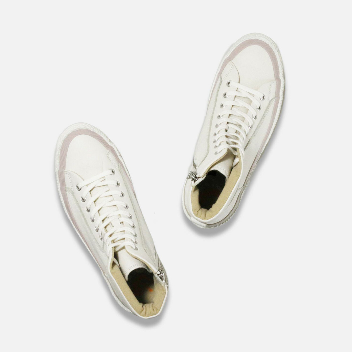 SPINGLE— pronounced SPINGURU in Japanese— is a combination of the English and Japanese word for spinning. Each pair of sneakers feature a unique wave—or makiage— sole that envelops the leather upper. This is constructed during the vulcanization process where the rubber sole is glued to the shoe body and put into a kiln where heat and pressure are applied. This ensures a strong bond between the sole and upper, for a shoe that wont peel or easily lose its shape. Crafted in the Bingo area of Hiroshima, SPINGLE is on a mission to create footwear for the masses.