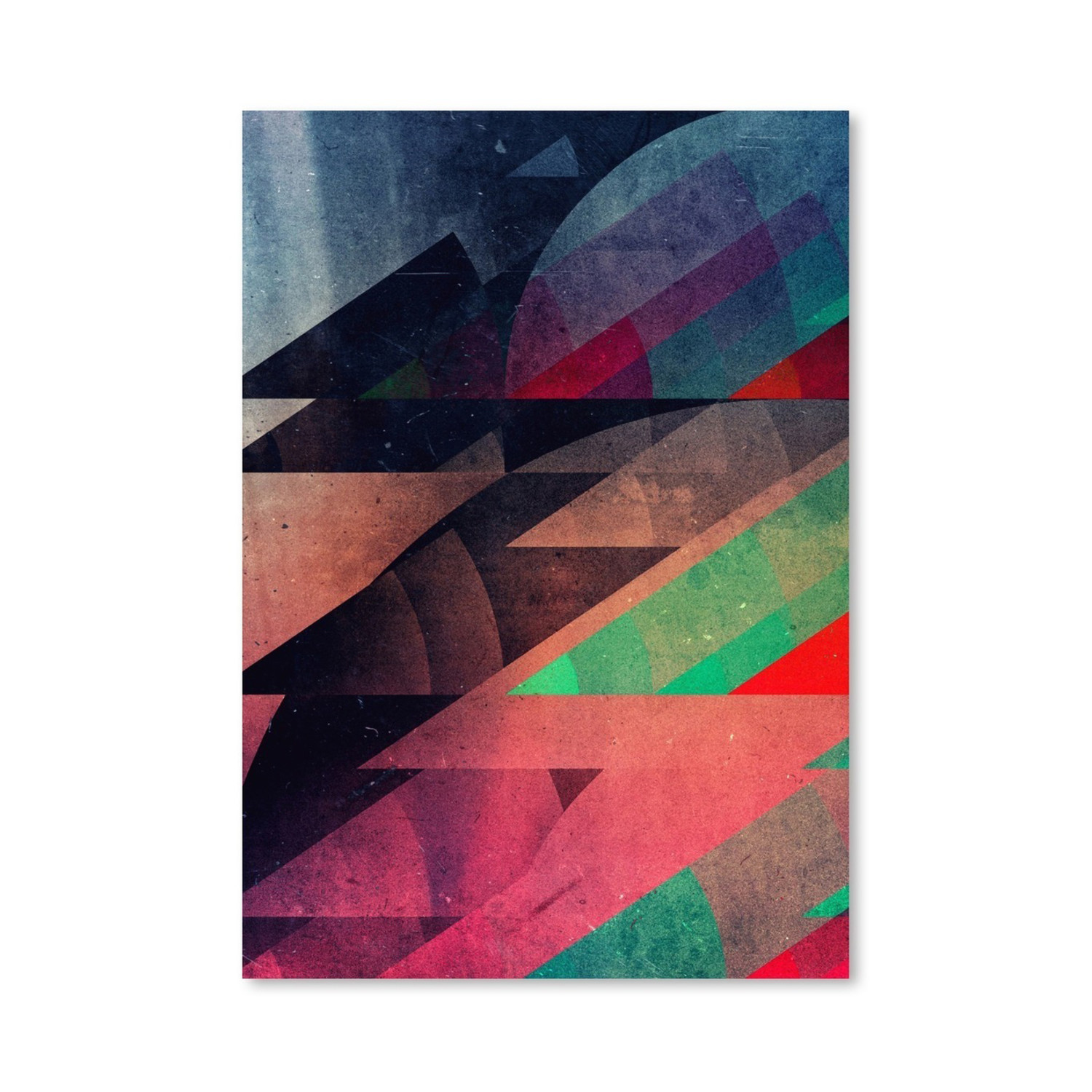 Graphic and unashamedly bold, this work by digital artist Spires is indicative of an entire world of design that relies on abstractions and geometry to set a mood or draw your attention. It's fine art from a fantastical perspective, printed in high definition detail that keeps you surrounded by a quantity of dizzying colors.