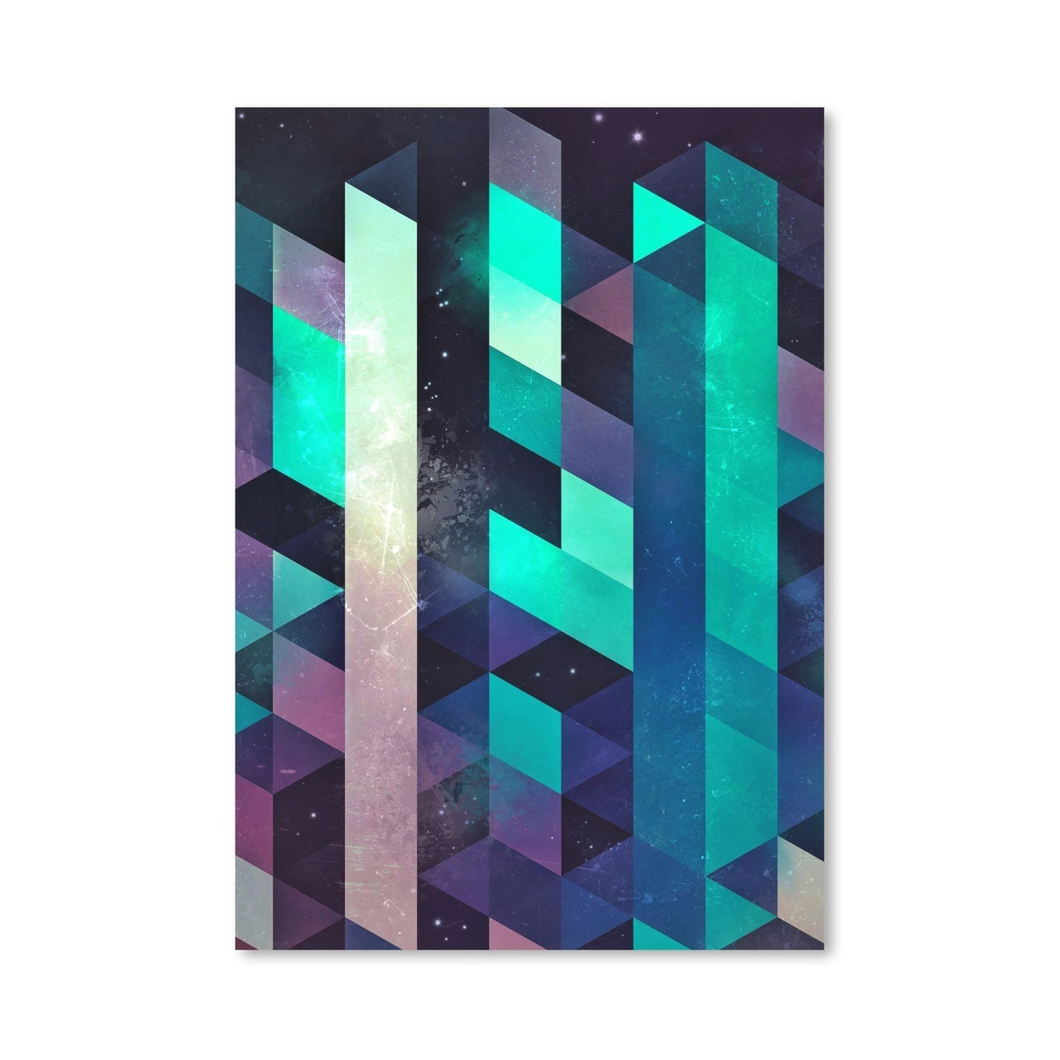 Graphic and unashamedly bold, this work by digital artist Spires is indicative of an entire world of design that relies on abstractions and geometry to set a mood or draw your attention. It's fine art from a fantastical perspective, printed in high definition detail that keeps you surrounded by a quantity of dizzying colors.