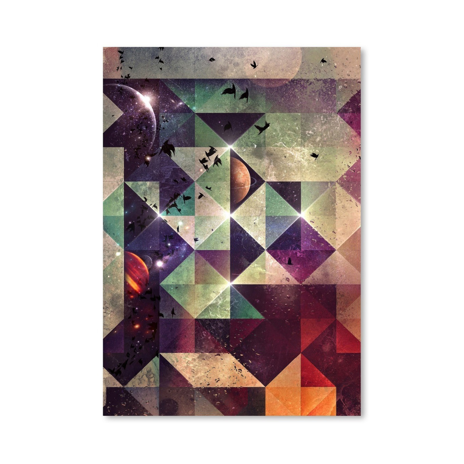 Graphic and unashamedly bold, this work by digital artist Spires is indicative of an entire world of design that relies on abstractions and geometry to set a mood or draw your attention. It's fine art from a fantastical perspective, printed in high definition detail that keeps you surrounded by a quantity of dizzying colors.