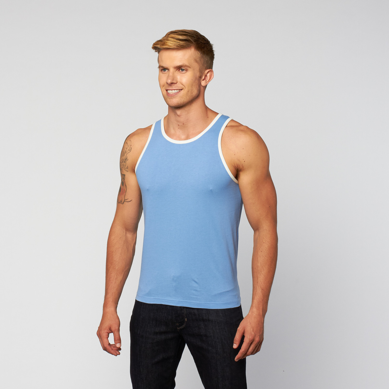 ST33LE’s Jersey Ringer Tanks set the baseline for our collection of men’s fashion and workout gear. They’re perfect for the gym or your casual warm weather wardrobe, whether you wear it solo or under your favorite button down. ST33LE started with pre-washed, breathable jersey cotton for maximum coolness and a soft, comfortable feel. Next, they created an array of great color combinations with our fabrics and contrasting, ribbed bindings at the neck, shoulders and arms. Finally, they cut a form-flattering, trim shape that's just tight enough across your chest to secure your upper body for enhanced athletic performance as you move through a hard workout. This tank will hold its own in any sweat test.