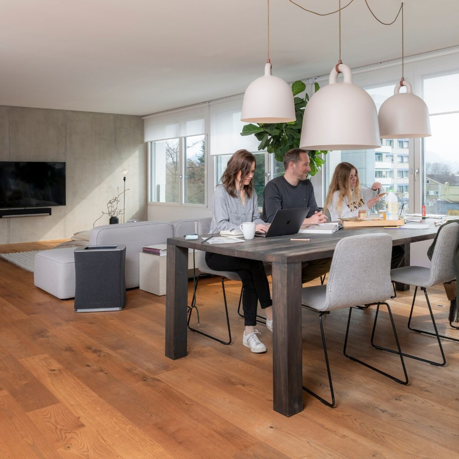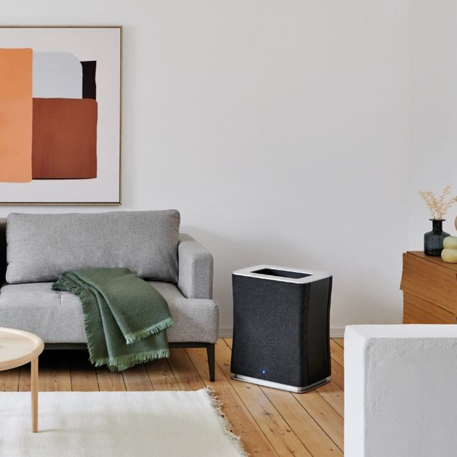 The Roger Big air purifier provides clean air in conference rooms, open-plan offices, and large spaces of up to 1100ft². The mobile indoor air purifier measures the air quality using his two sensors. So pollutants are detected immediately and removed by the Dual Filter™. If the air quality deteriorates, the air quality indicator changes color. If the automatic mode is activated, the level of performance of the purifier is adjusted automatically.