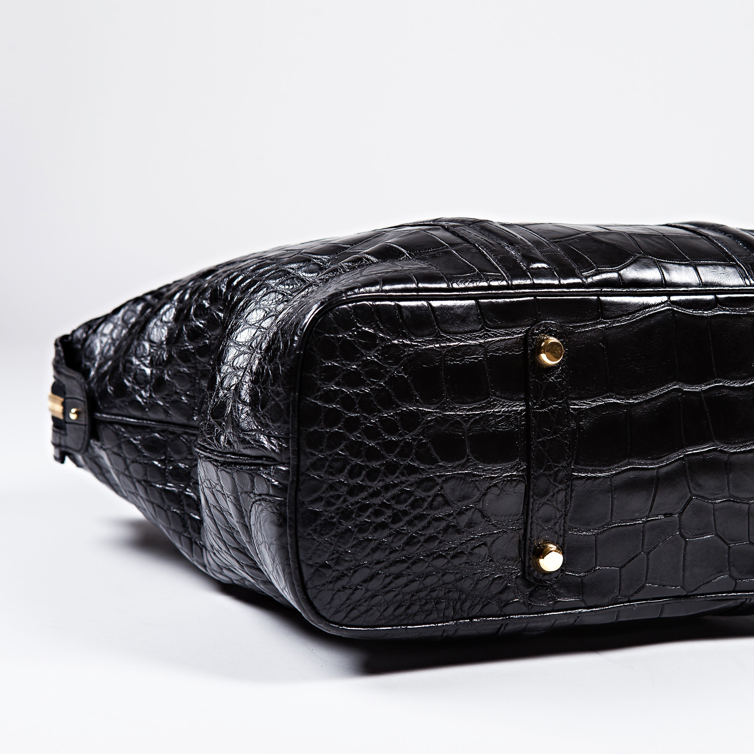 This iteration of the Garcia Tote is stunning in black alligator with luxurious gold hardware. With its elongated Birkinesque shape, it's an instant classic that improves on other luxury brands with cleaner lines, smarter shapes, and much more high quality materials.