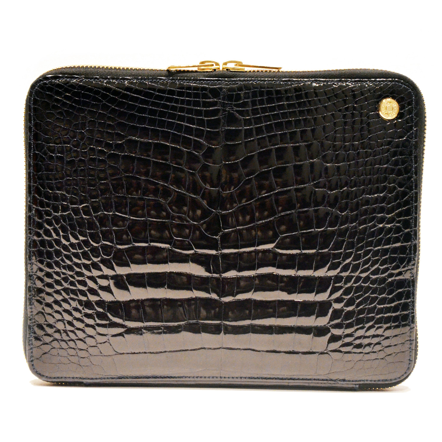 In a modern age where portable, wireless computers live in our bags and purses, it's time that we carry our iPads with the style they deserve. Why not treat your futuristic technology with the lavish attention that it deserves, with the iPad Case from designer Jason Stalvey. The premium cut of alligator belly leather shines in a luscious dark blue, and 18K gold-finished hardware is a beautifully gleaming additional gilding.