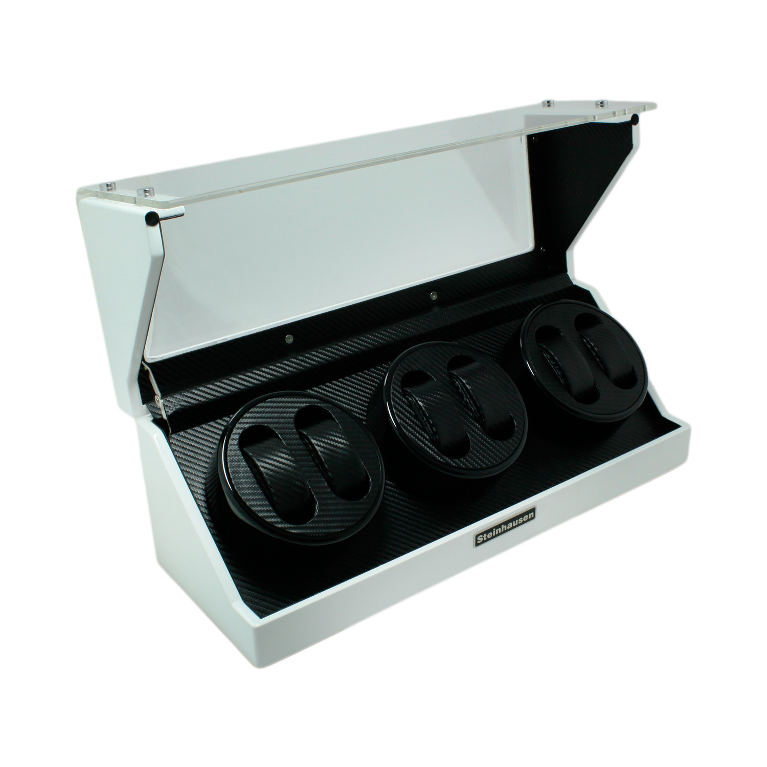 Monolith Collection Watch Winder // Triple, White, Carbon Fiber