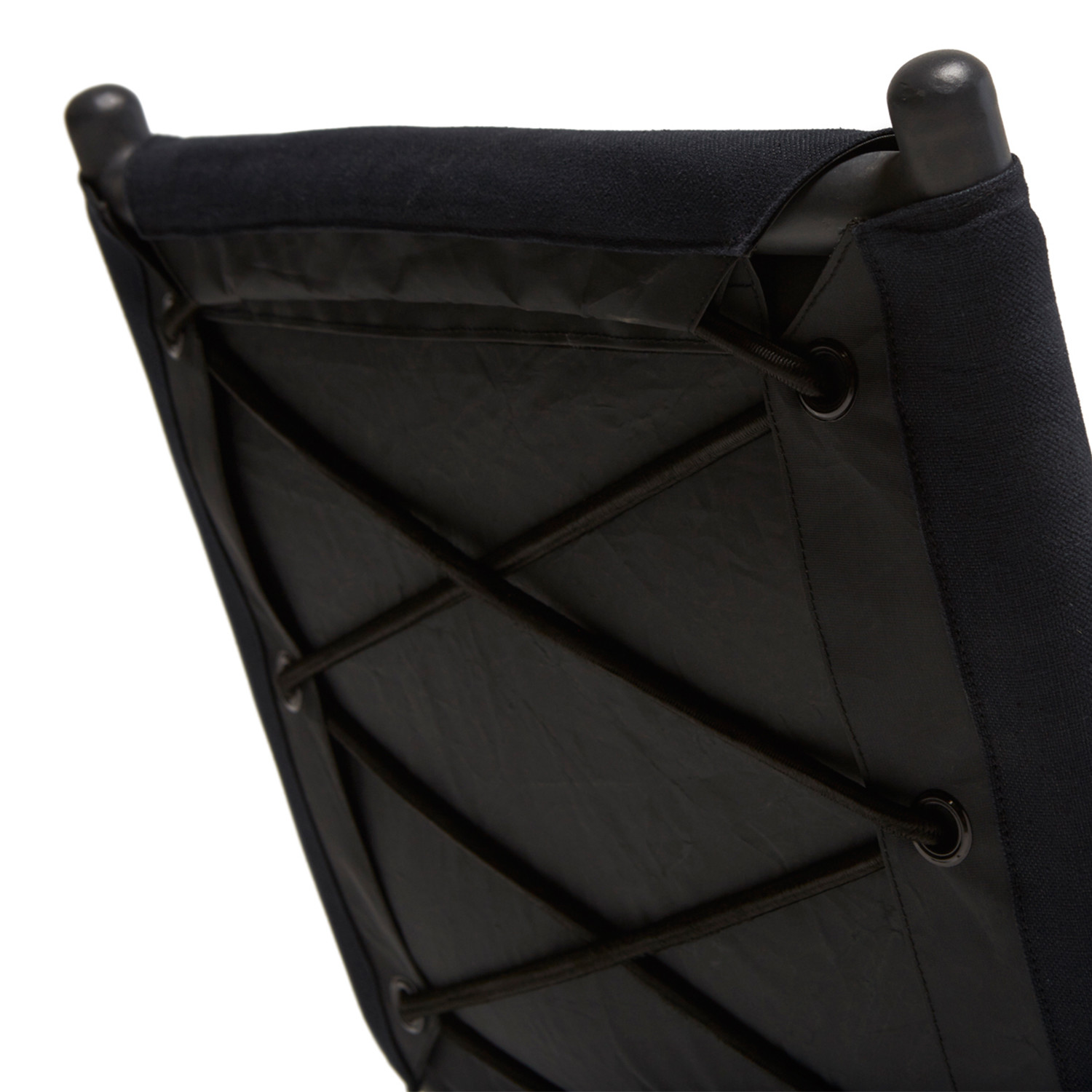 Inspired by the ethos and materials of ocean sailing, the Bowline Chair is a rich piece with a modern aesthetic. The upholstery is made from washed sailcloth - the kind of fabric used to make boat sails - on the exterior, and a soft canvas on the seats and side cushions, for an incredibly unique and nautically-inspired furniture centerpiece.