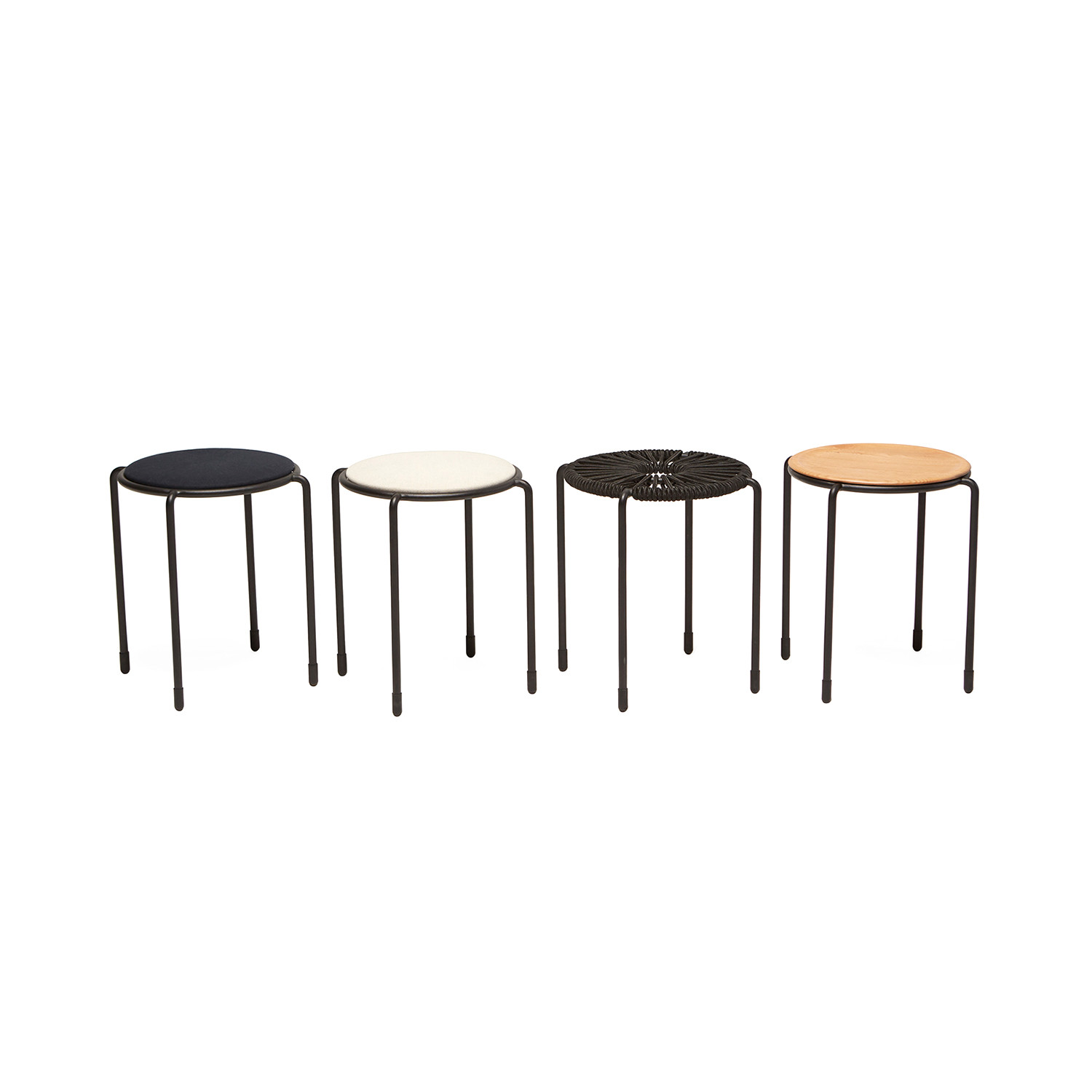 Designed for Japanese lifestyle brand Colony 2139 the stackable Bowline Stool is made from materials inspired by life at see, including soft canvas, rope, or sandblasted alder wood, and finished with metal hairpin legs. The seat is created with interwoven, elasticized sailing cord, for a nautically-inspired centerpiece.