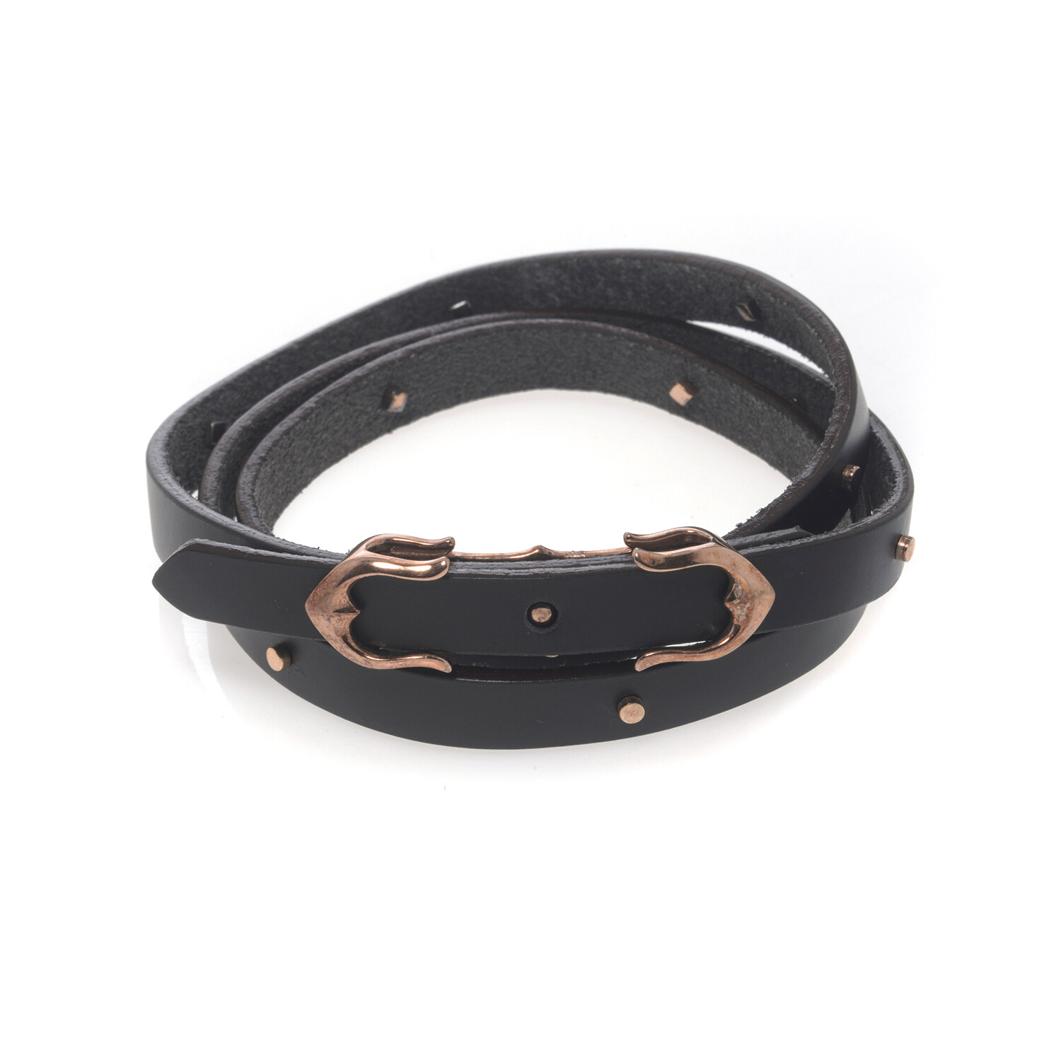 Thorn 18k Rose Gold + Leather Wrap Bracelet // 28" // Store Display