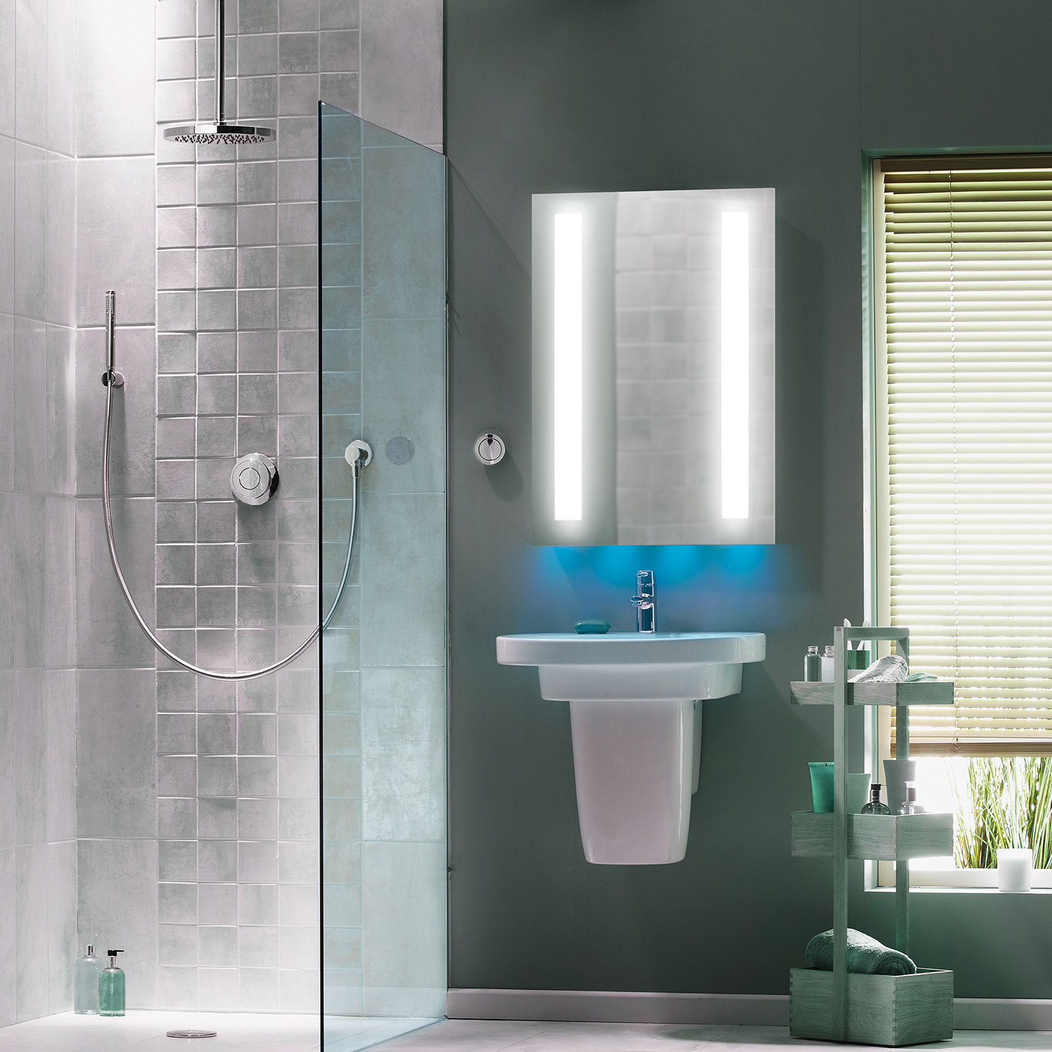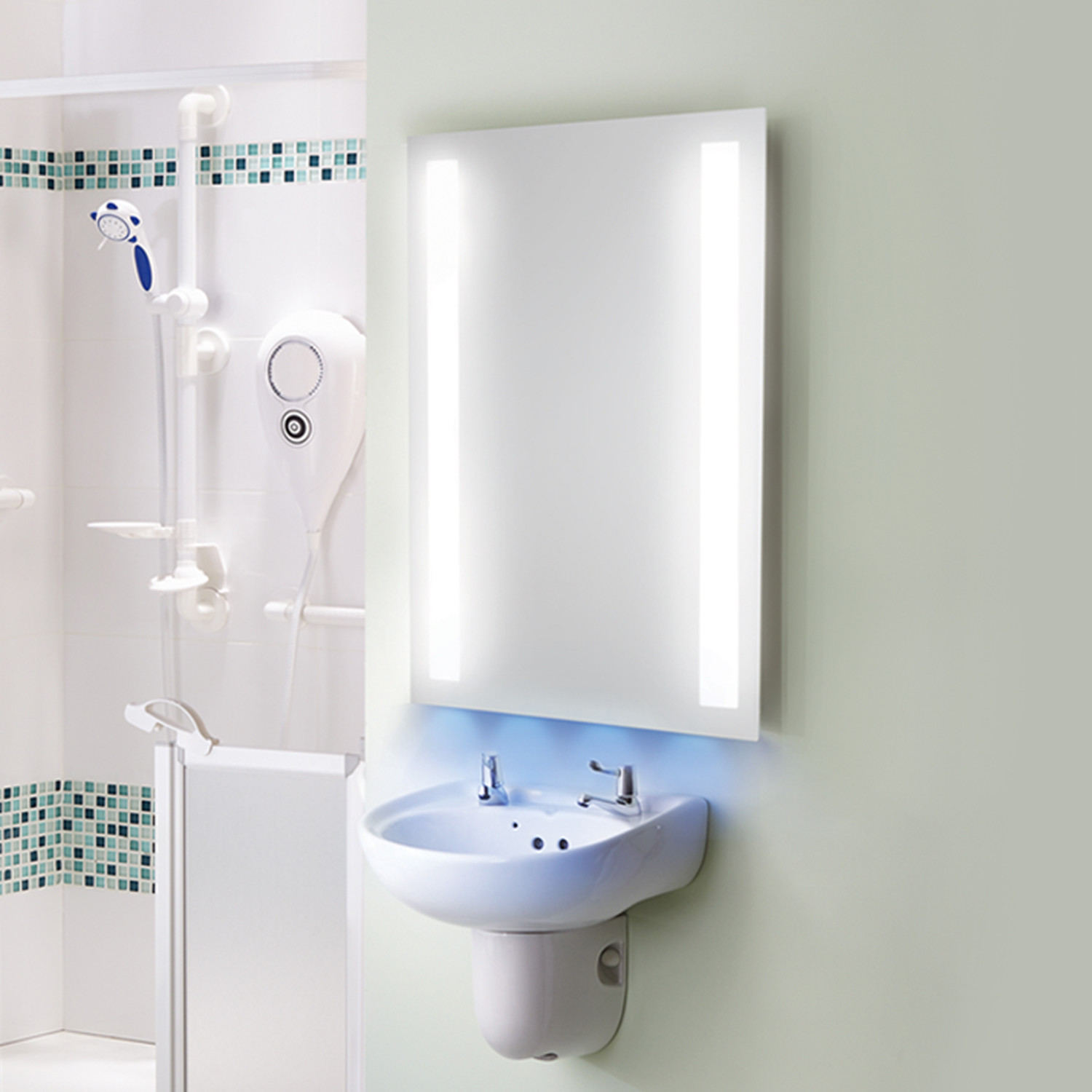 Keep your sink free from germs and bacteria, and help keep you and your family protected from infection and illness with the world’s only disinfecting mirror. The SteriLumen Disinfecting Lit-Mirror System is a revelation in both style and sanitation. The built in germicidal UVC LED that destroys 99.99% of HAI-causing pathogens in and around the sink— including the drain— in just two hours. Research shows that the bathroom sink is full of multi-resistant microbes that are splashed across the sink basin throughout the day. Utilizing the power of UVC LEDs, SteriLumen provides continuous disinfection of the most common harmful pathogens such as C-Diff, MRSA, and E.coli. The elegant backlit design also features white light LEDs that illuminate and reflect at a higher color rendering accuracy, giving you a more vibrant and healthier appearance. This innovative bathroom accessory is fully programmable, and controlled by a motion sensor, ensuring that your sink, drain, basin, backsplash, handles and faucet stay clean and disinfected in between cleanings.