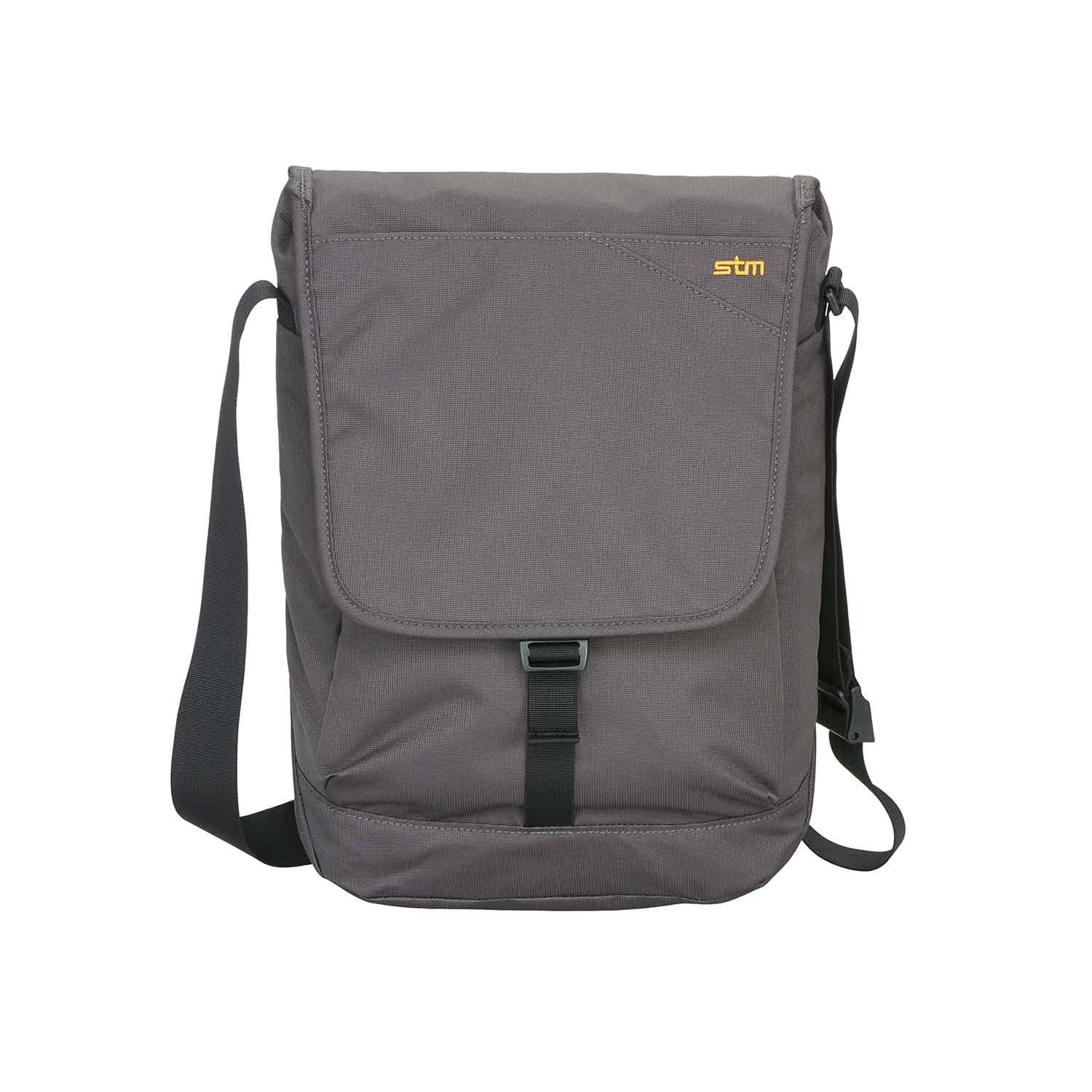 The messenger style flap is secured with a sleek clip, while the main compartment sports STM's SlingTech System - a padded sling suspends your devices from the bag's floor, and the bottom corners are wrapped in additional padding for the ultimate in digital gear protection. A comfortable and adjustable shoulder strap also allows for both cross body or one shoulder carry, and the ingenious luggage pass-through attaches the bag to the handle of your wheeled luggage.