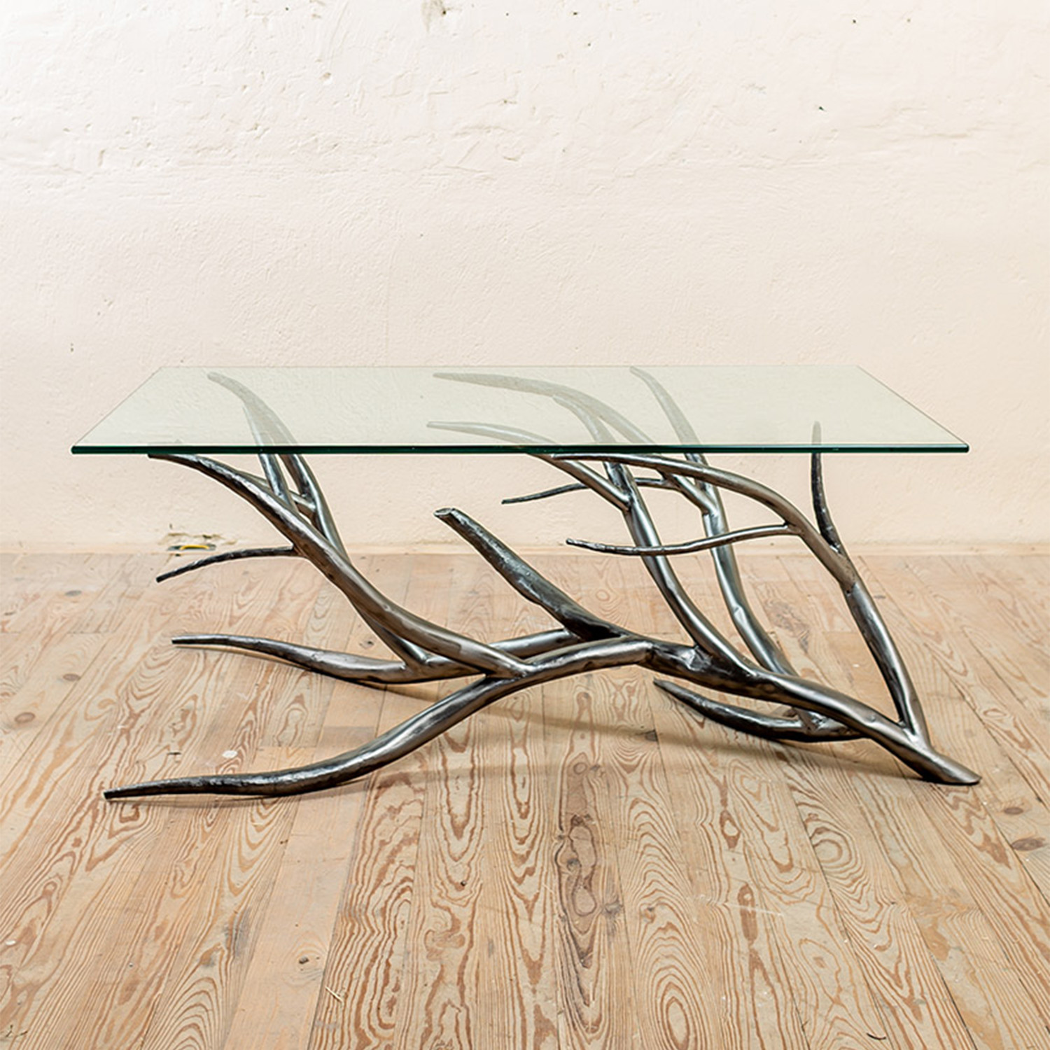 Part of the Sycamore Collection, this Sycamore Coffee Table is a hand-forged sculpture of iron branches, each as unique as the wood it's modeled after. The smooth branch texture emulates a de-barked piece of timber that has drifted many miles and has been polished by nature's steady hand. Each bend and taper is the product of an artisan blacksmith's creative vision and experience in the forge, resulting in a true a work of art perfect your space.
