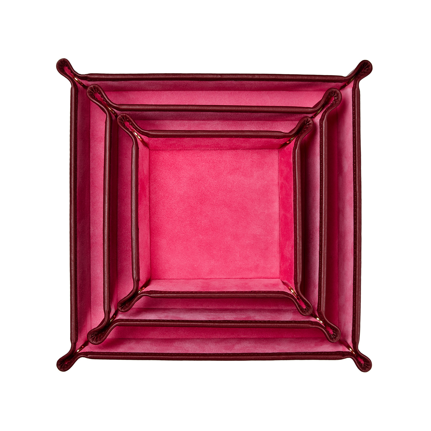 Organize your small essentials in style at home and away with the luxury Leather Valet Tray Set. It features three different size trays designed with different daily organizational needs in mind. Each tray is handcrafted from the softest calf leather and Italian goat suede, and effortlessly packs flat so you can take them with you anywhere.