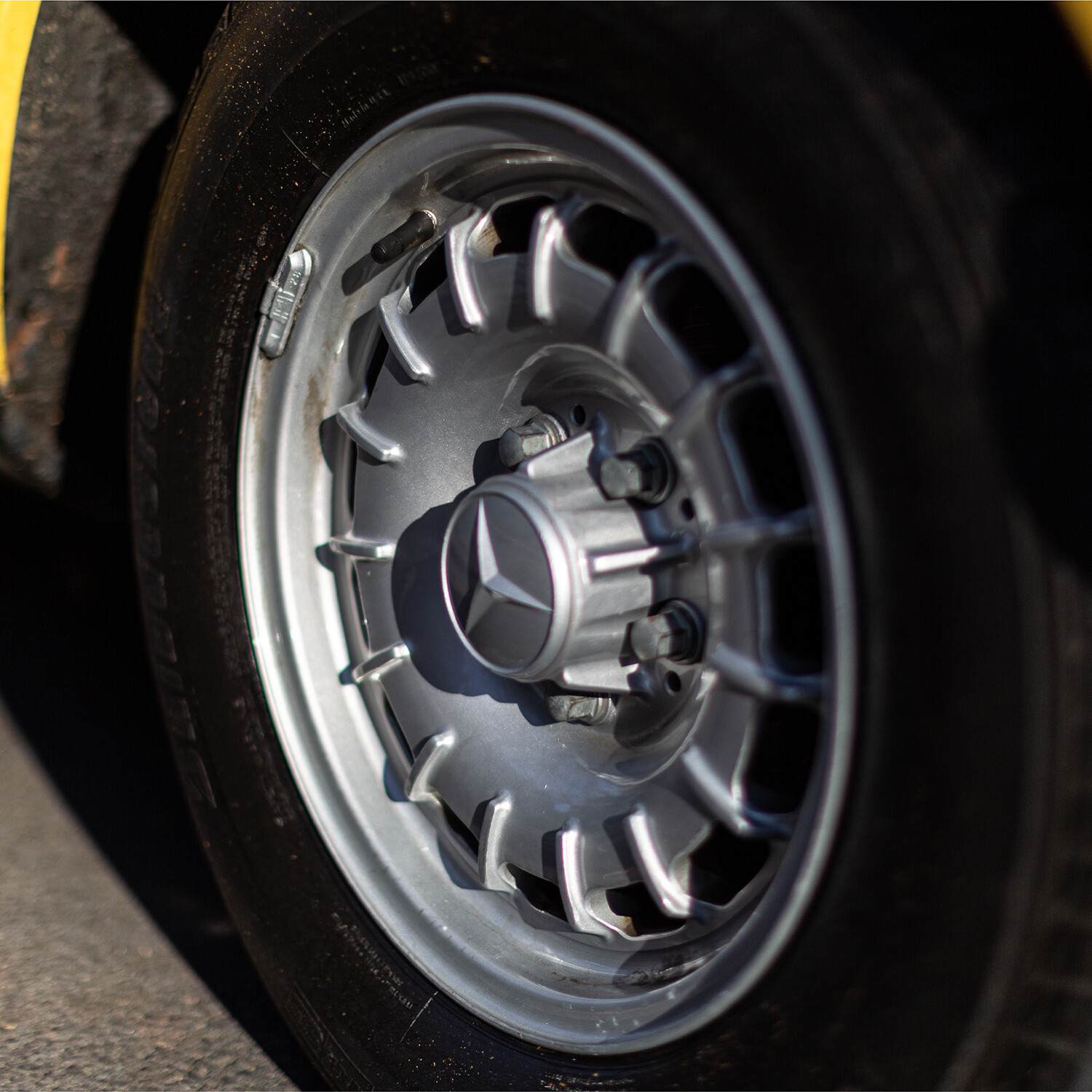 The car features the original rims as shown, it does not have yellow hub caps.