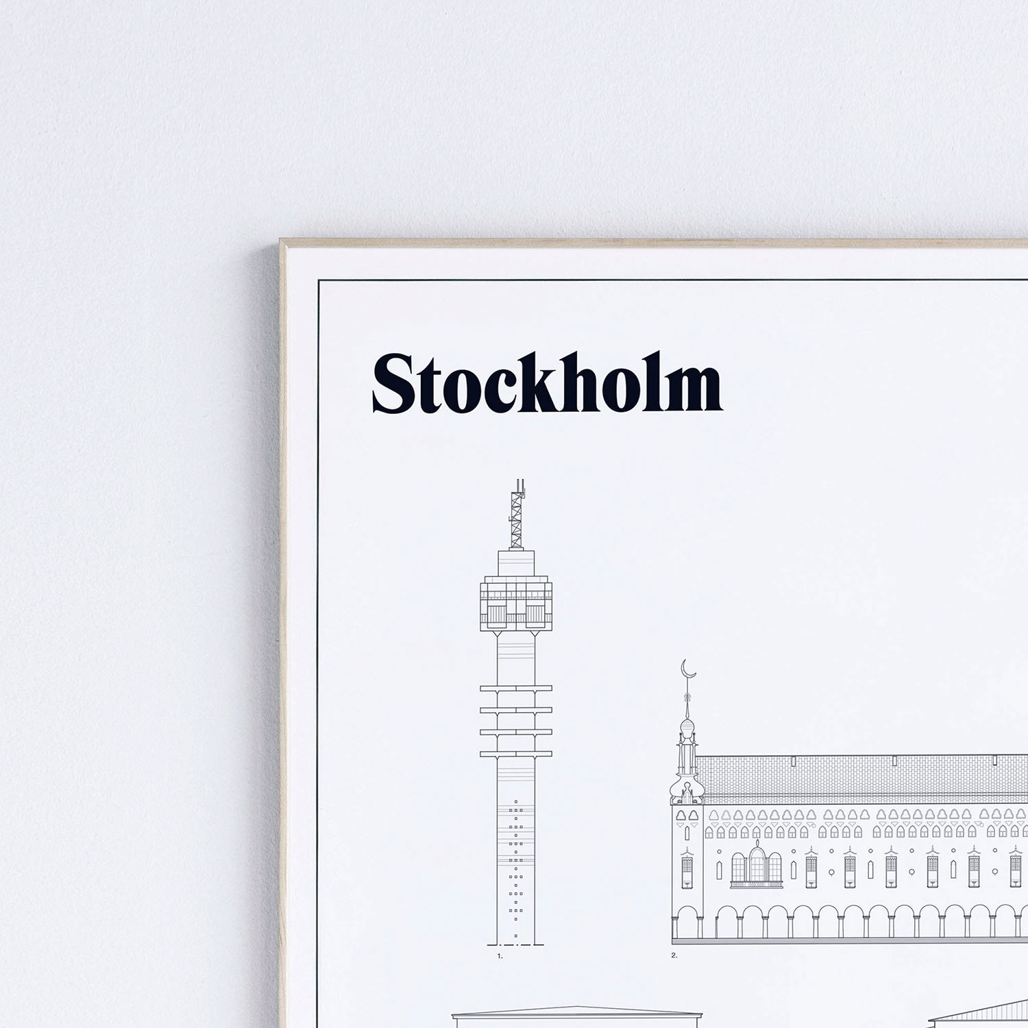 Celebrate architecture from around the world with this limited-edition, subtly detailed print featuring elevation drawings of 5 landmarks of Stokholm: Kaknästornet, The City Hall, The City Library, The Concert Hall and Stortorget. Hang it in your favorite space, for an edgy and impressive piece that's sure to spark conversation.