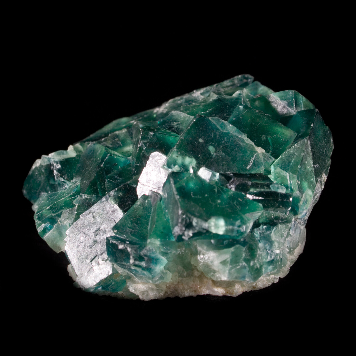 Deep Green cubic crystals of Fluorite glow a vibrant blue under UV light!