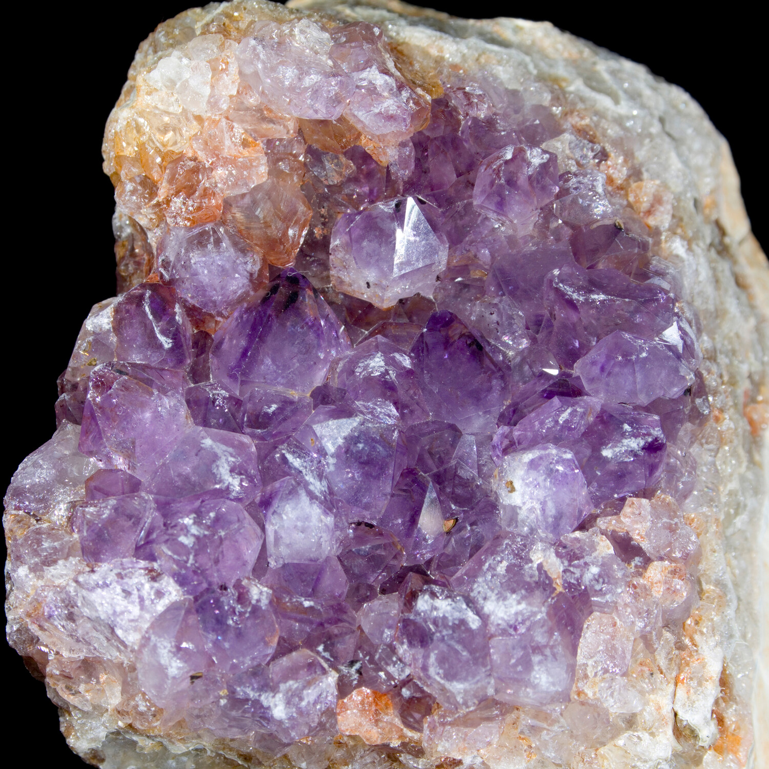 Perfectly petite Amethyst Agate crystal specimen mounted on a sturdy iron stand presenting the optimal display angle.