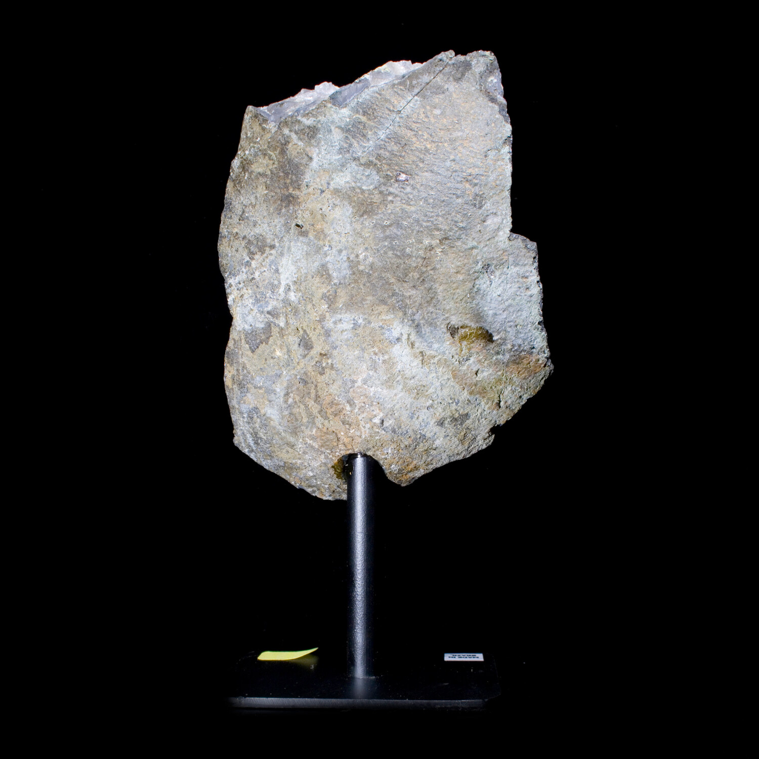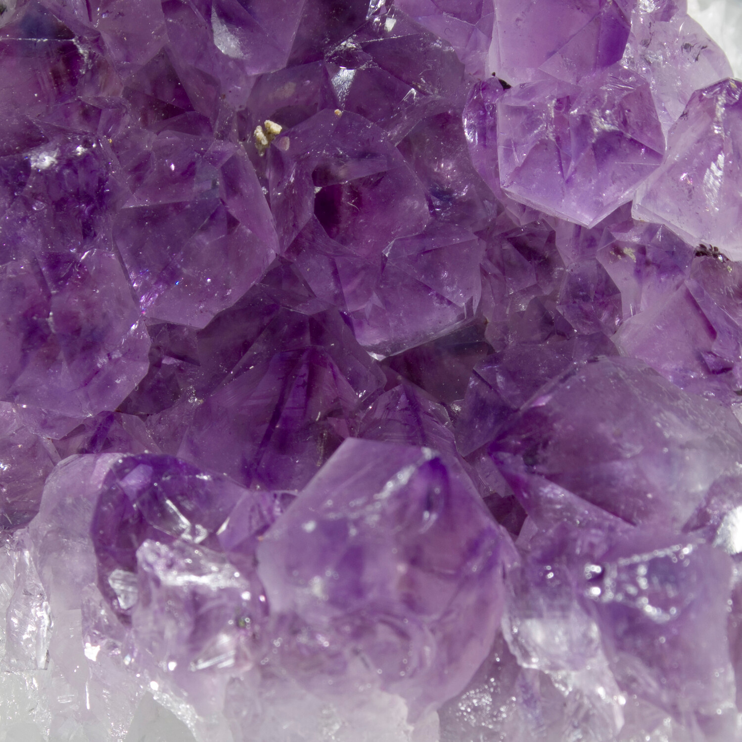 This interesting Amethyst agate specimen clearly grew over an existing layer of terminated Quartz crystals. It is mounted on a sturdy iron stand to present it at the optimal display angle.