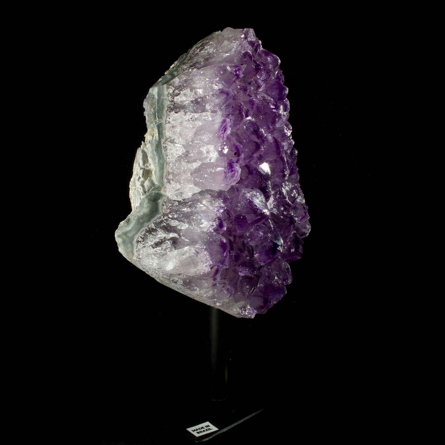 This perfectly petite Amethyst Agate crystal is mounted on a sturdy iron stand to present at the optimal display angle.