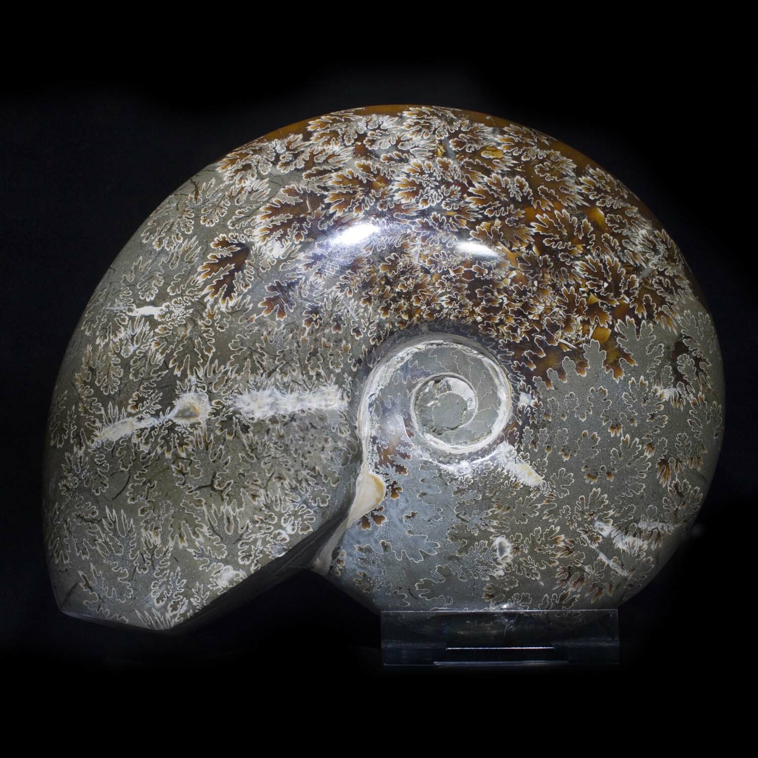 A natural masterpiece within the Golden Ratio, this extra large 7" fossil Ammonite is hand polished to reveal the complex, fractal growth lines within the ancient shell.