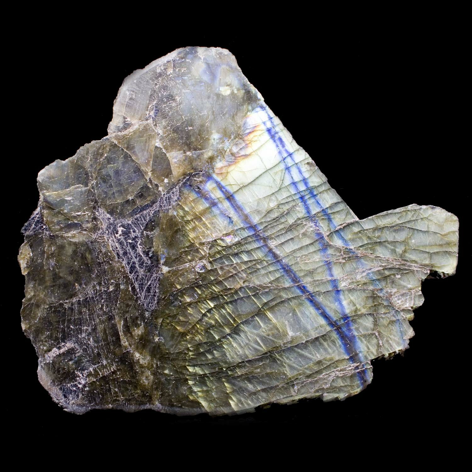 One side polished, one side as it naturally occurs, both react with a rainbow of colors at the right angle! Labradorite is a spectacularly iridescent mineral which exhibits different colors depending on the angle of the viewer. Labradorescence is not the superficial coloring of the stone, but a property of the light reflected by a surface within.