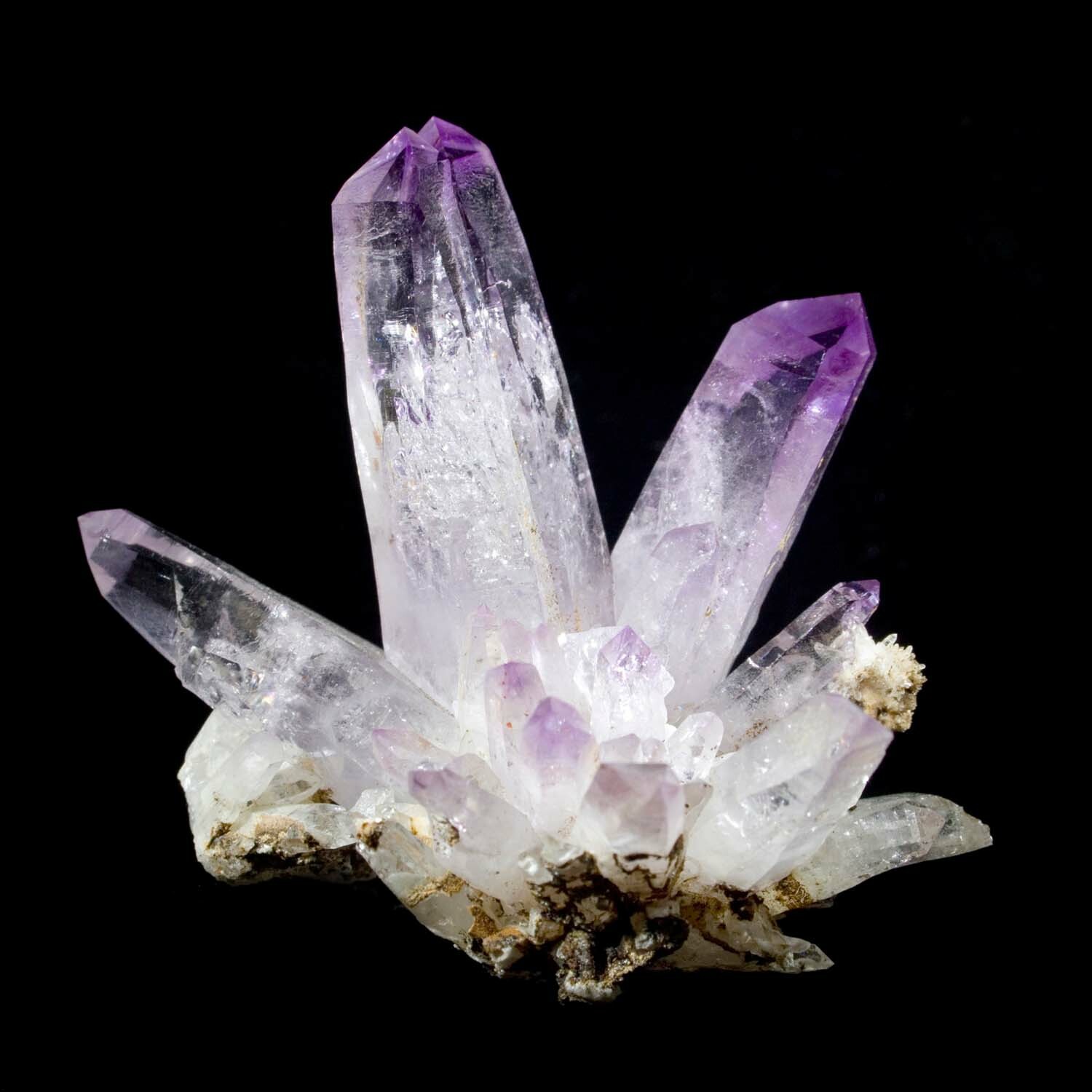 Over a dozen terminations of many scales create a fantastically balanced, self-supporting flower of Amethyst from of Vera Cruz, Mexico. The clarity and luster of this Amethyst is among the highest seen from this legendary location.