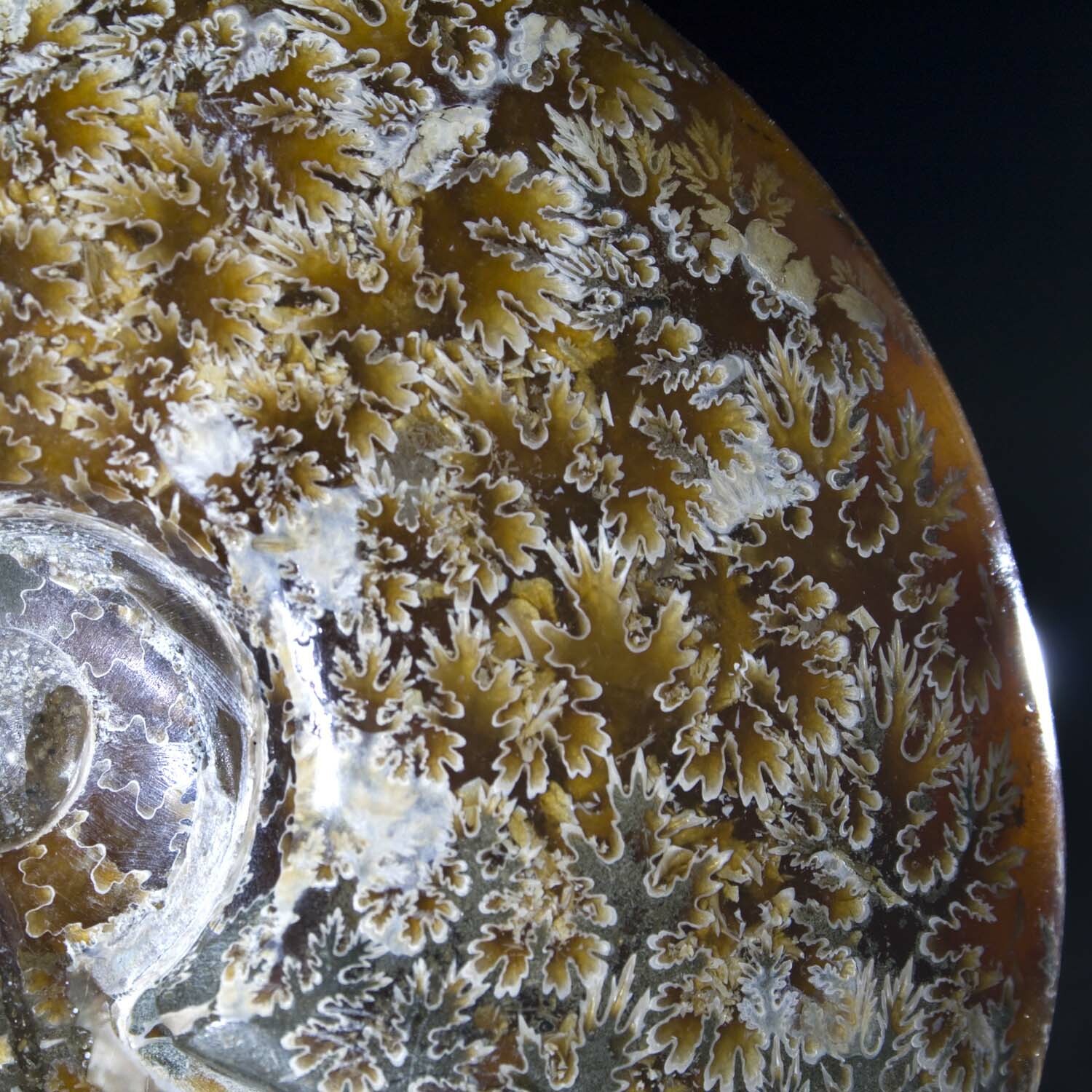 A natural masterpiece within the Golden Ratio, this fossil Ammonite is hand polished to reveal the complex, fractal growth lines within the ancient shell.