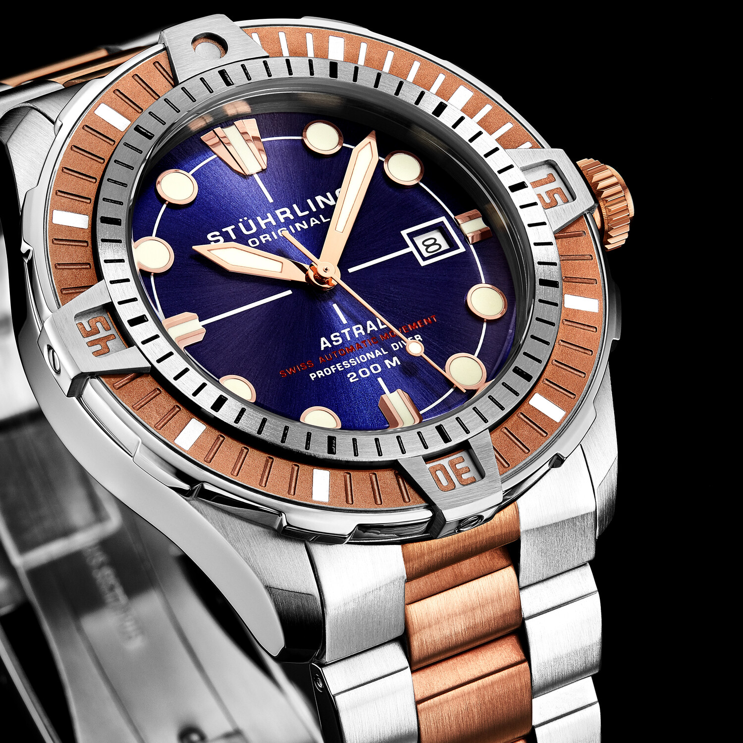 Stührling offers a collection of Swiss automatic dive watches that are accessible to anyone. Perfect for everyday wear, they're designed around the principle of getting noticed more, for less. Their bold design ensures that whenever you have a Stuhrling on your wrist, you'll look and feel like the style icon you were meant to be.