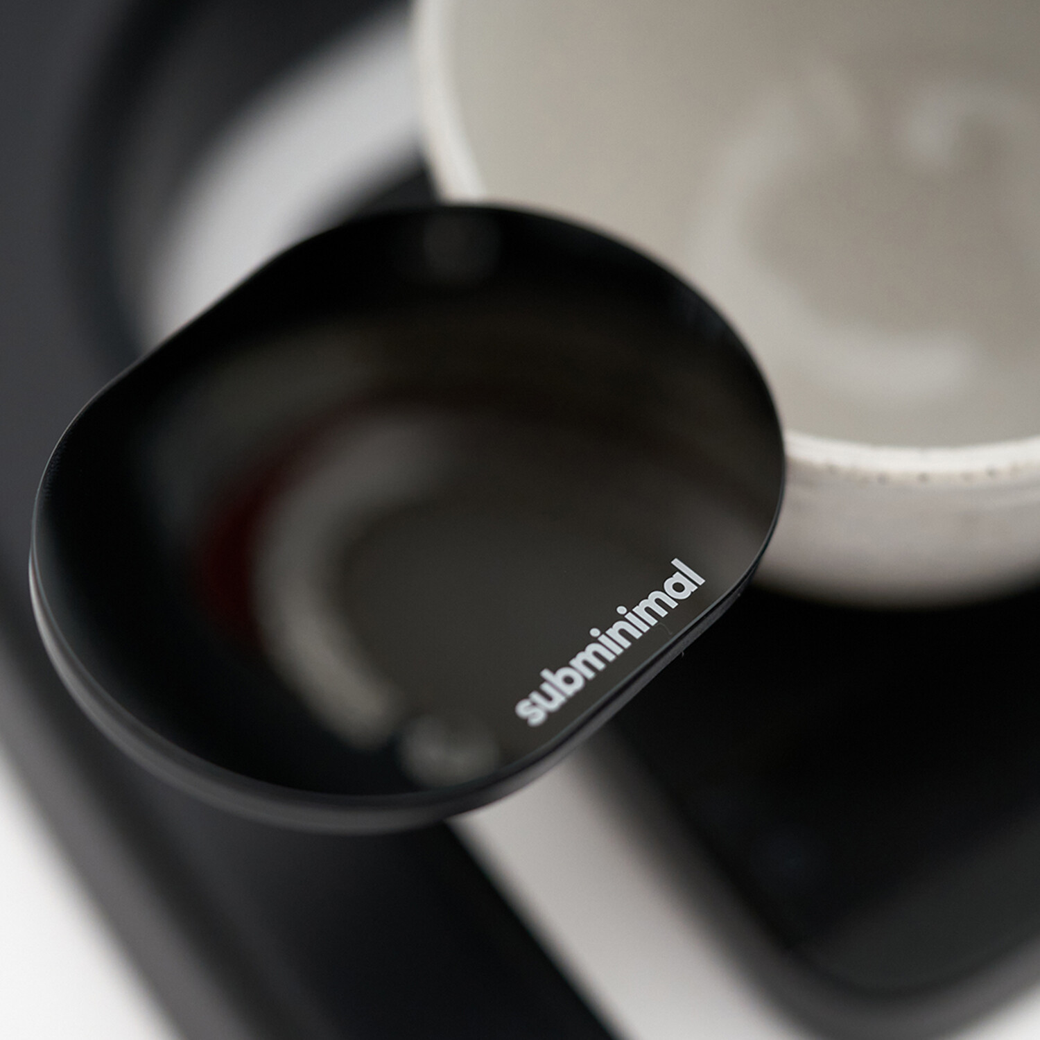 — Apply the magnetic dot to the wall or on your espresso machine to keep the mirror handy at all time.